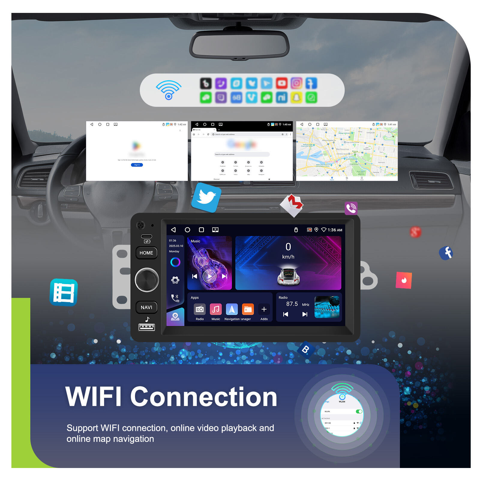 - WiFi & Bluetooth 5.0 Terintegrasi: Akses internet, streaming musik, panggilan bebas genggam