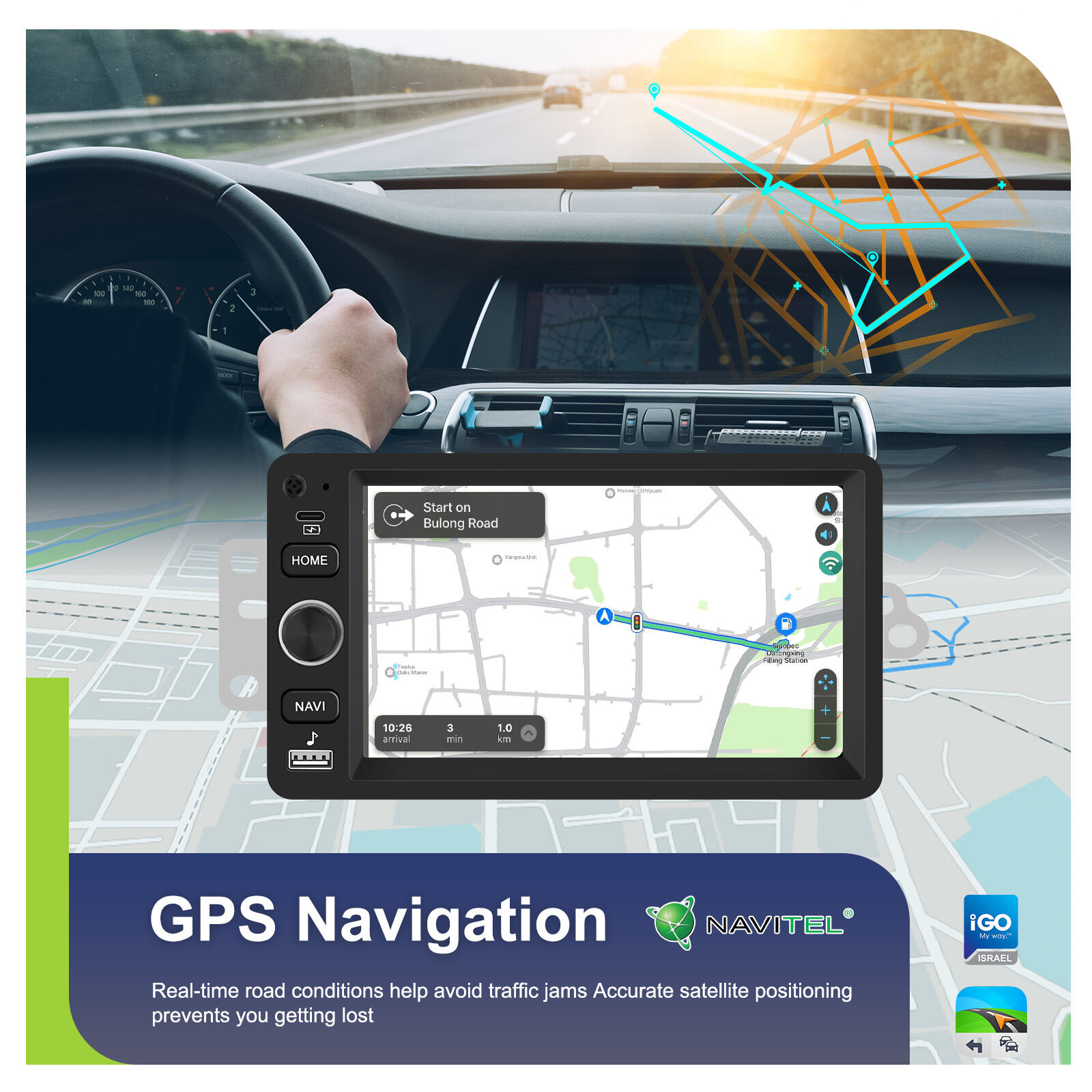 - GPS bawaan: Peta daring/luring, petunjuk suara, lalu lintas waktu nyata