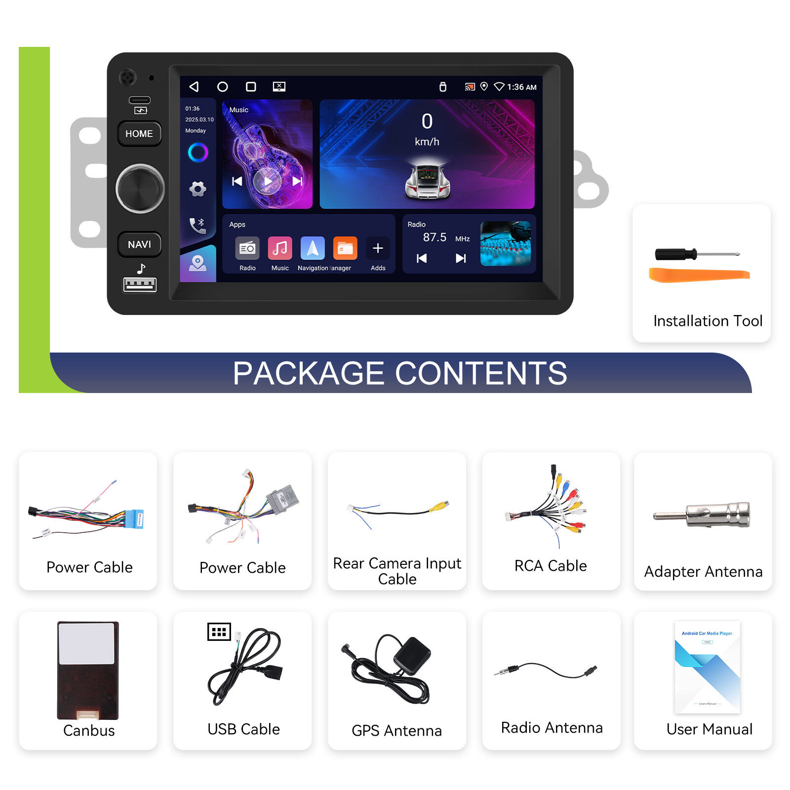 - Radio FM/RDS: Penerimaan jernih, musik, berita, serta pembaruan lalu lintas