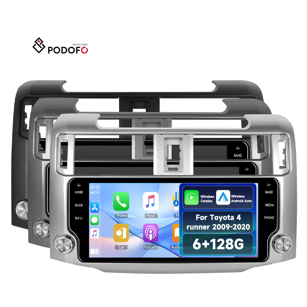 מערכת סטריאו לרכב Podofo 10.33 אינץ' 6+128 ג'יגה-בייט עבור טויוטה 4Runner (2009–2020), רדיו אנדרואיד לרכב, CarPlay אלחוטי / Android Auto, מסך IPS, GPS, ו-Fi, תצורה מקורית (OEM), מודלים A4354BK/A4354SR/A4354GR