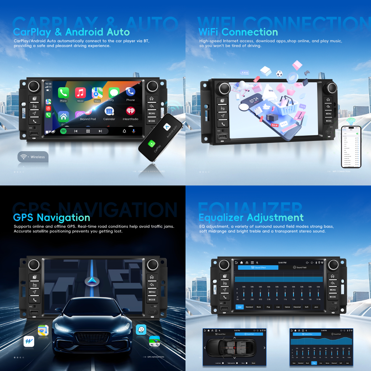 פודופו 7 אינץ' לג'יפ ורangler 2009–2018, רדיו לרכב אנדרואיד, 4+128 ג'יגה-בייט, CarPlay/אנדרואיד אוטו/מסך מגע IPS/GPS/ווי-פי/בלוטות' /FM/RDS, יצרן מקורי (OEM), מפעל, A4443
