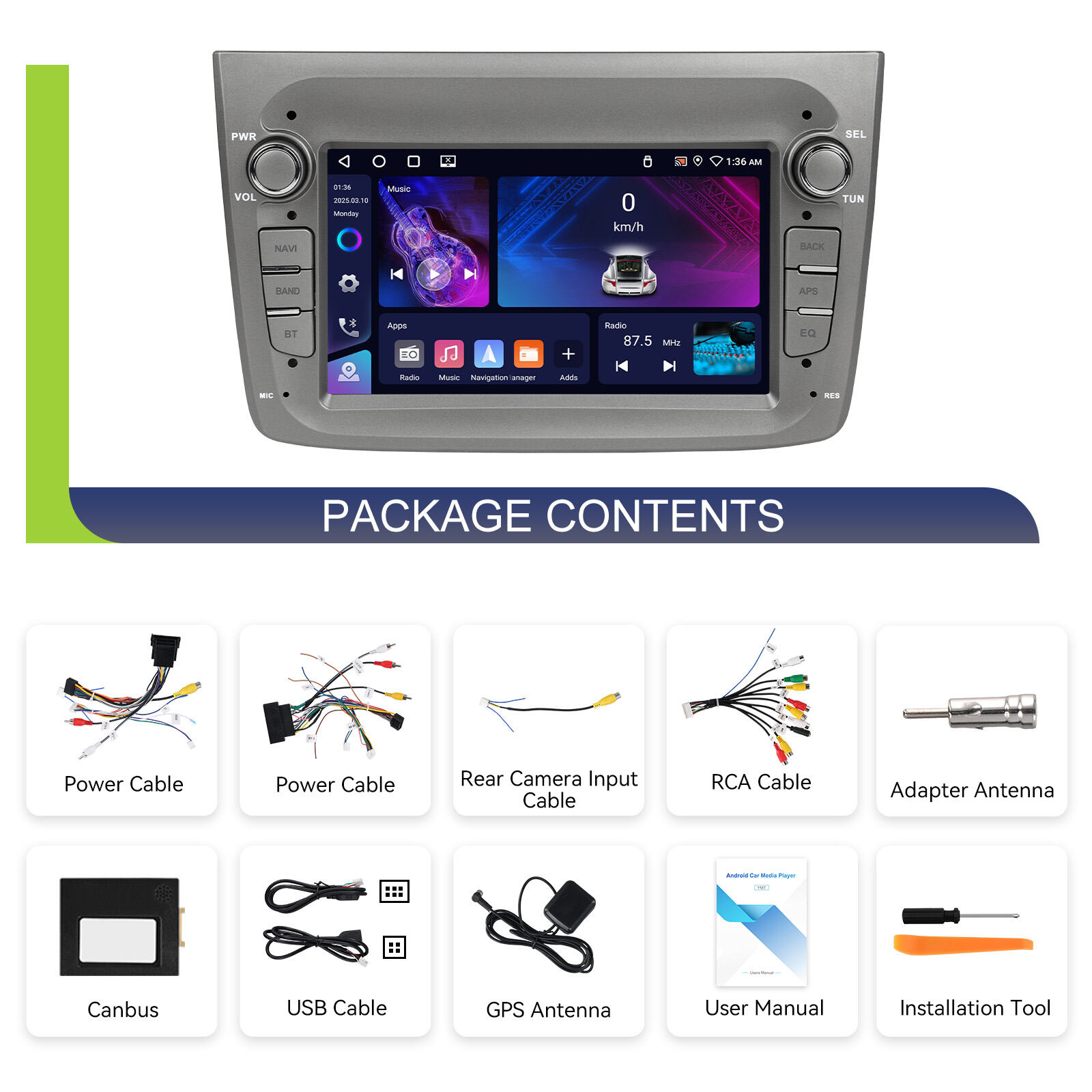 רדיו לרכב אנדרואיד של Podofo, מסך 7 אינץ', רדיו לרכב סטריאו עם 4 ג"ב + 64 ג"ב, CarPlay אלחוטי/אנדרואיד אוטו, רדיו לרכב עם GPS, וויפאי ו-RDS לאלפא רומיאו מיטו (2008–2016), מודל A4444