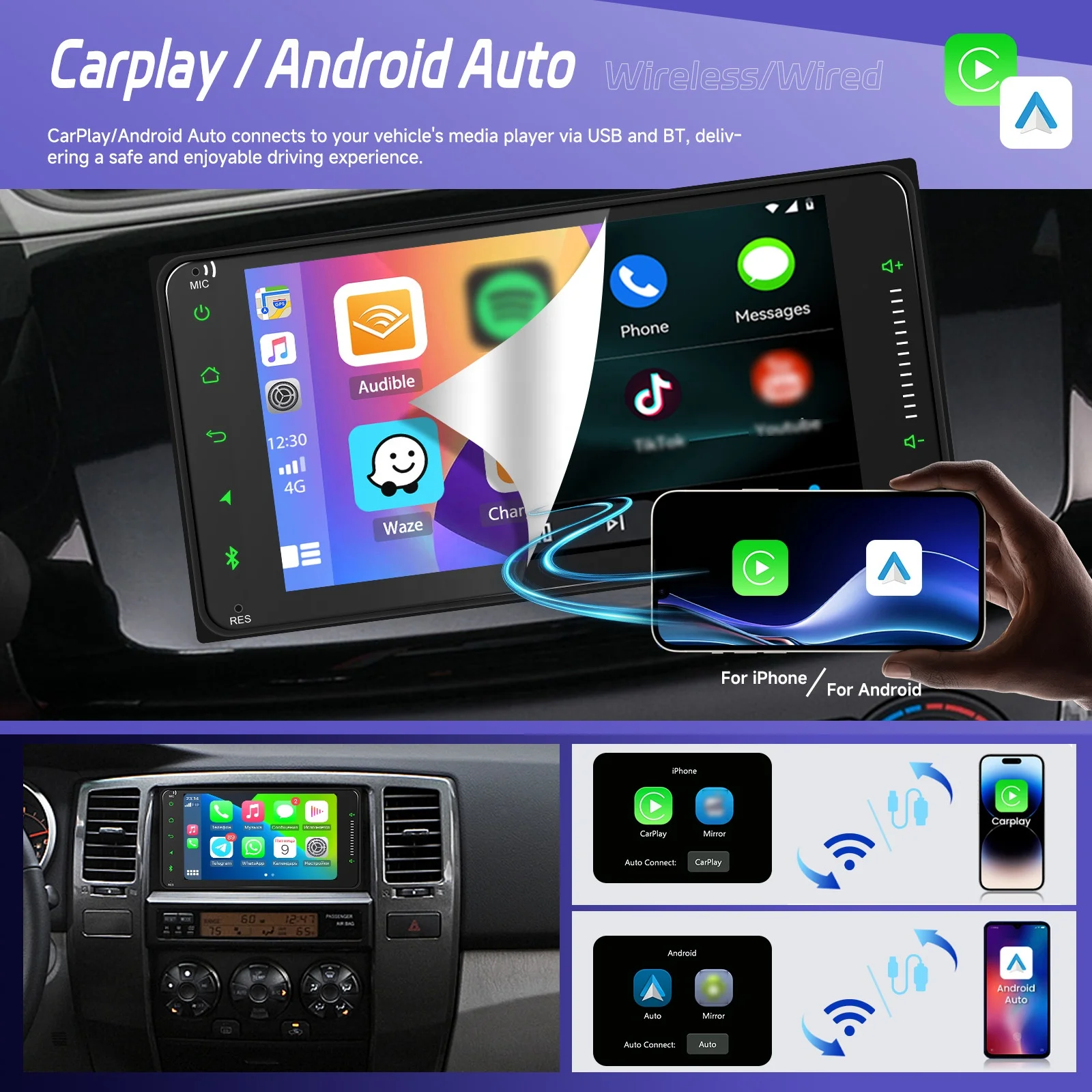 - 有線/無線Android Auto対応:ナビゲーション、通話、メッセージ、音楽をシームレスに利用可能