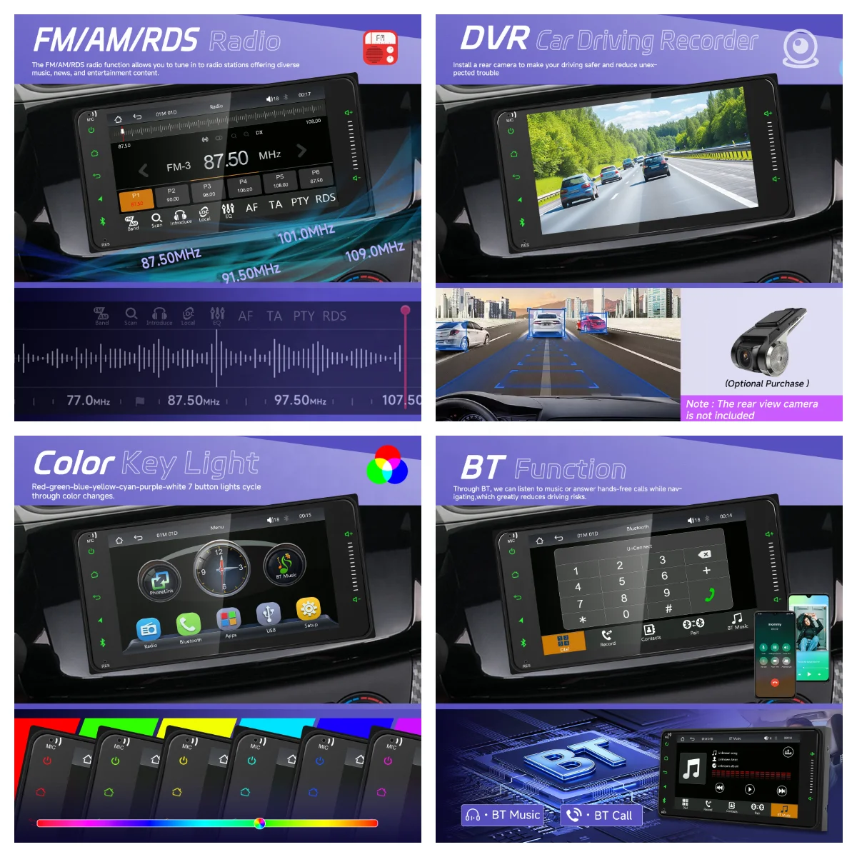 - 7インチタッチスクリーン:鮮明な表示、スマートな操作