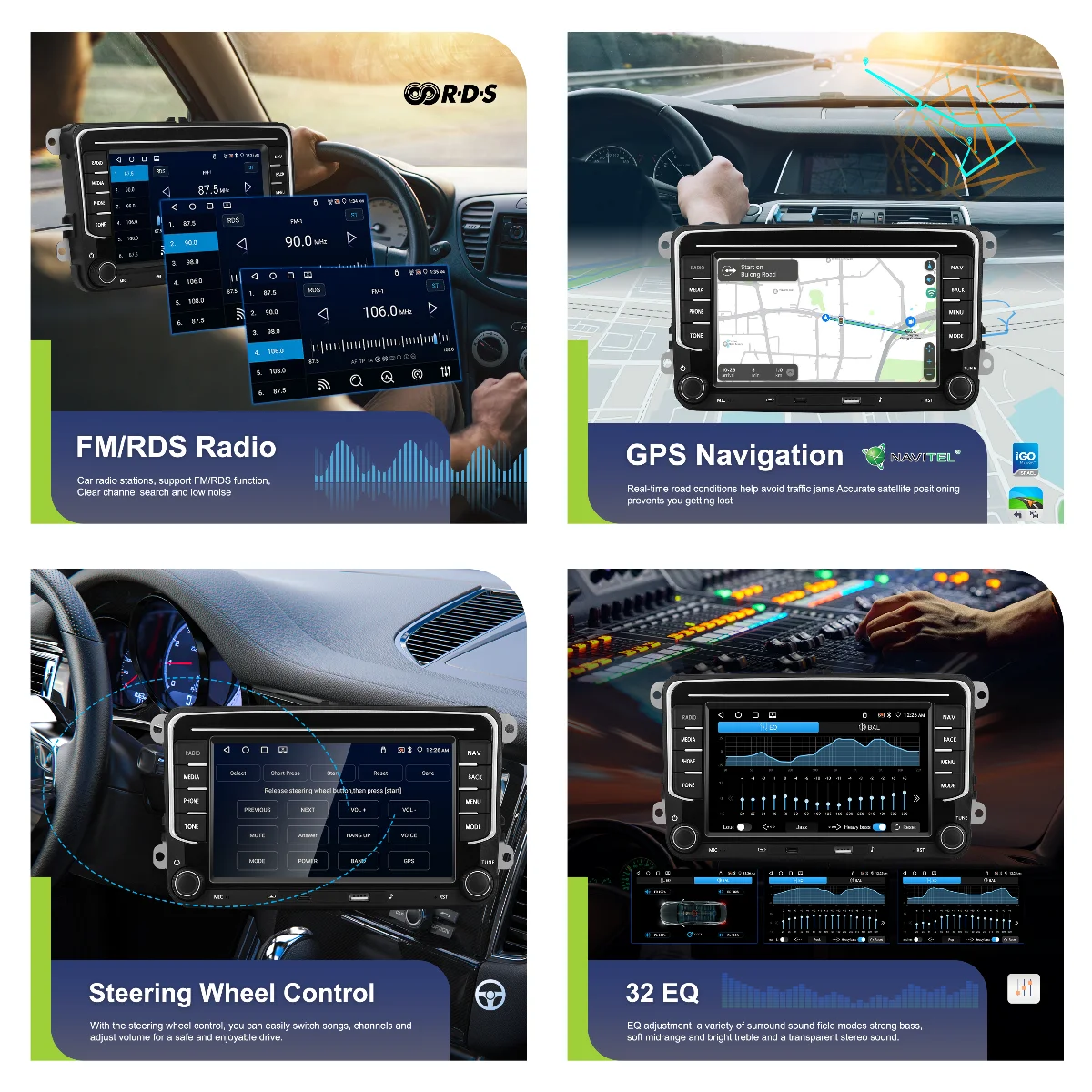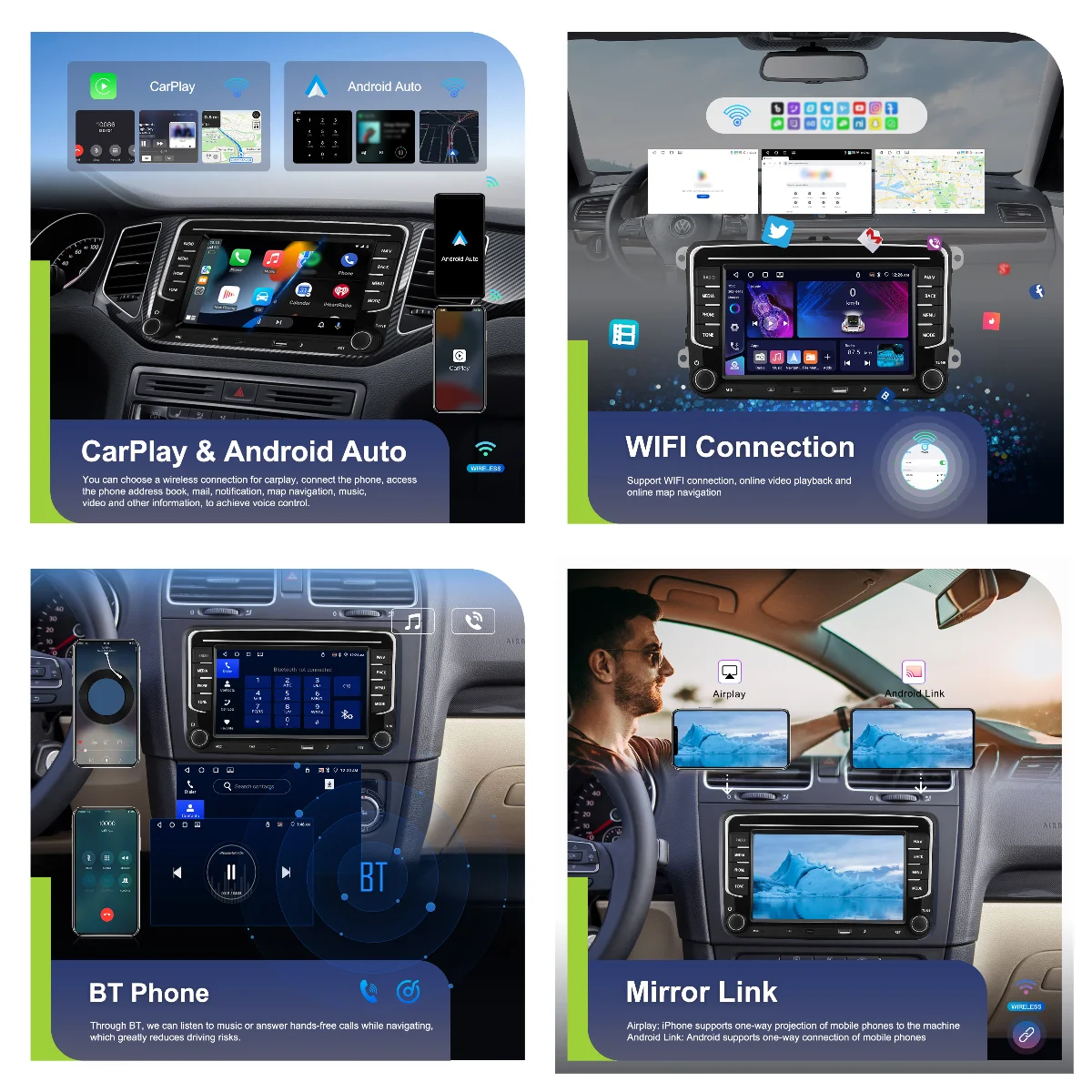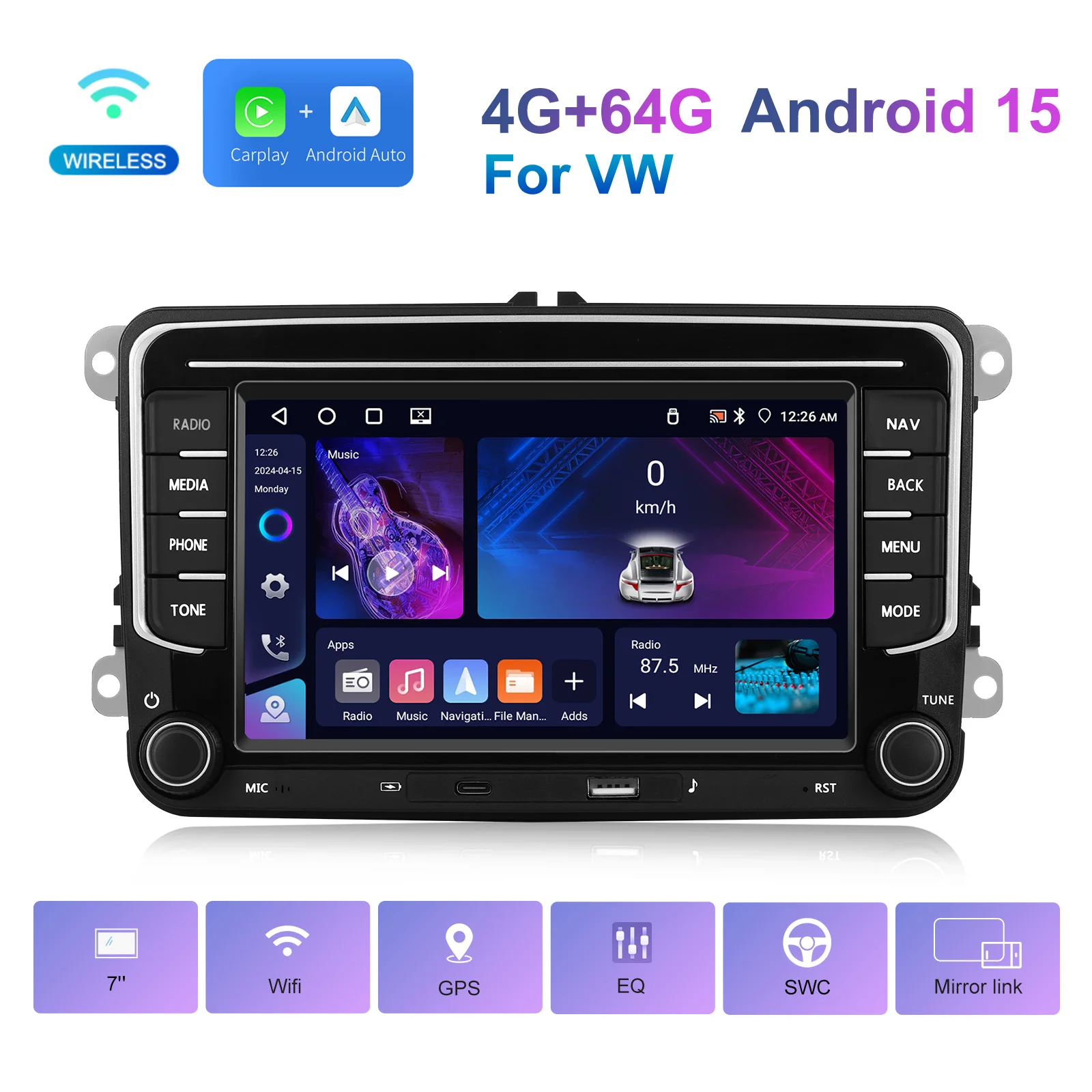 Podofo Androidカーステレオ 7インチ(4GB+64GB) VW キャディ/パサート/ポロ向け 無線CarPlay/Android Auto対応 Type-C高速充電対応カーオーディオ OEM仕様 A4582