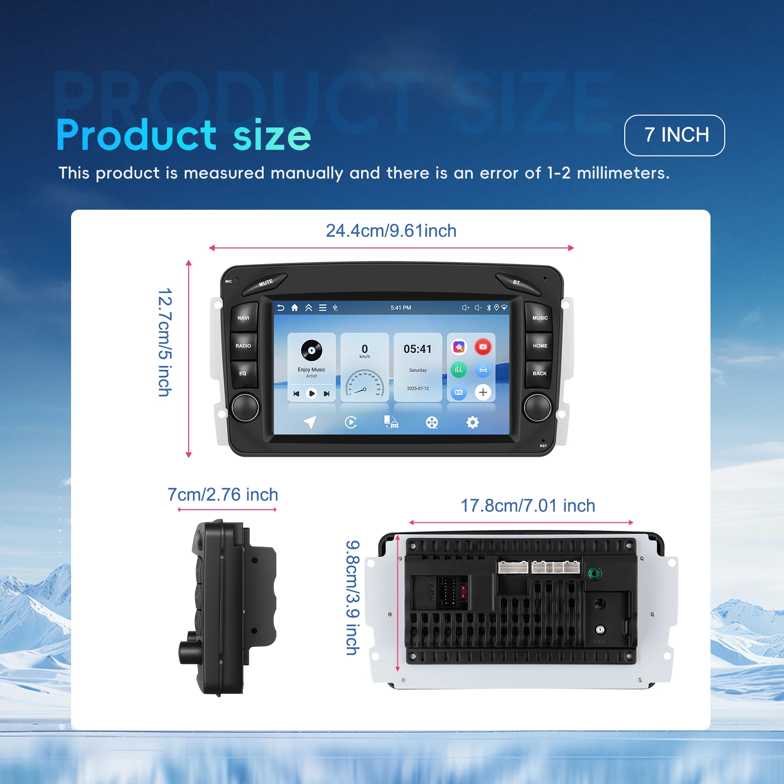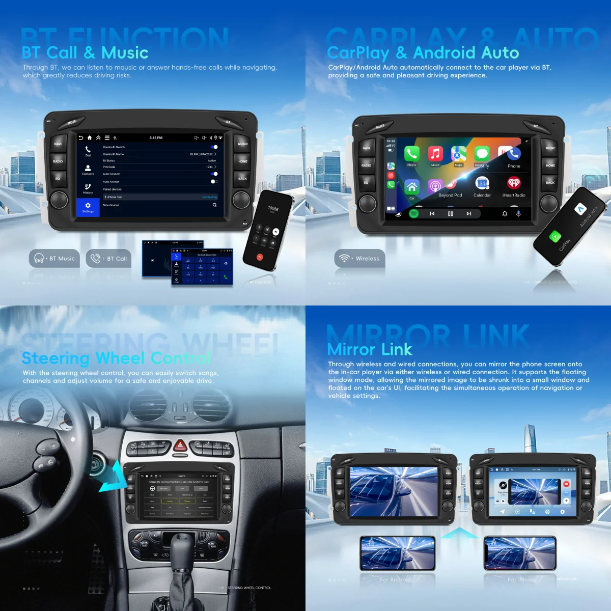 Podofo メルセデス・ベンツ CLK/Eクラス/Cクラス用 7インチ Androidカーラジオ、4GB+64GB、ワイヤレスCarPlay/Android Auto、GPS/Wi-Fi、IPSディスプレイ、ODMモデル A4597