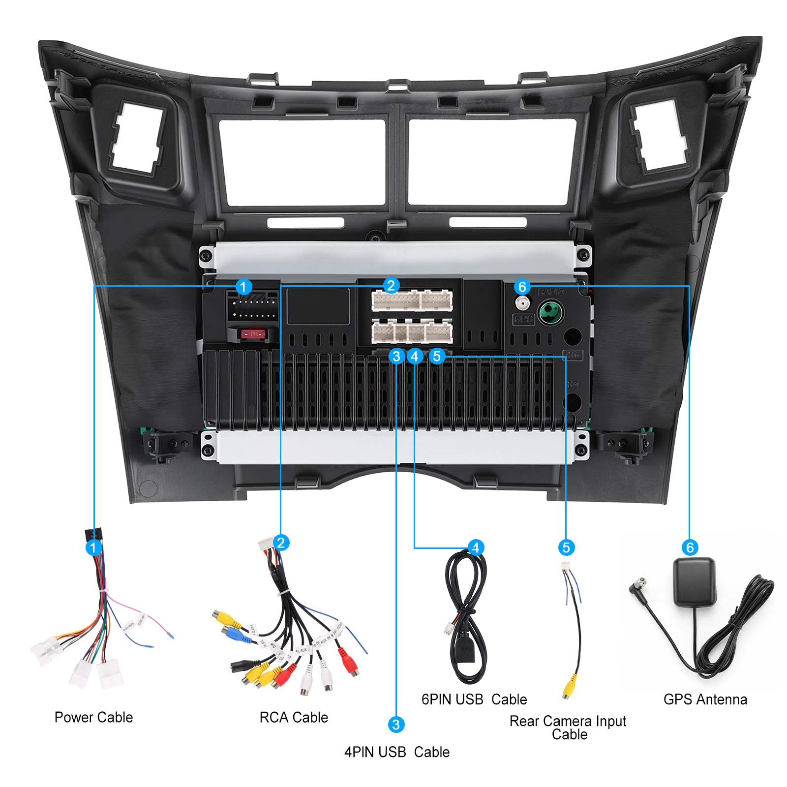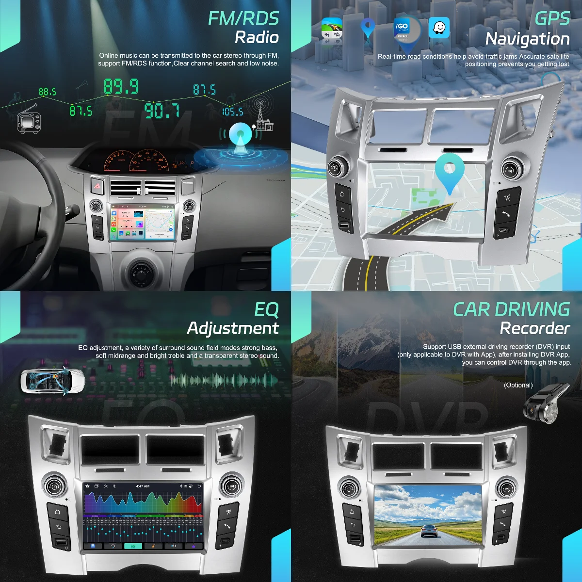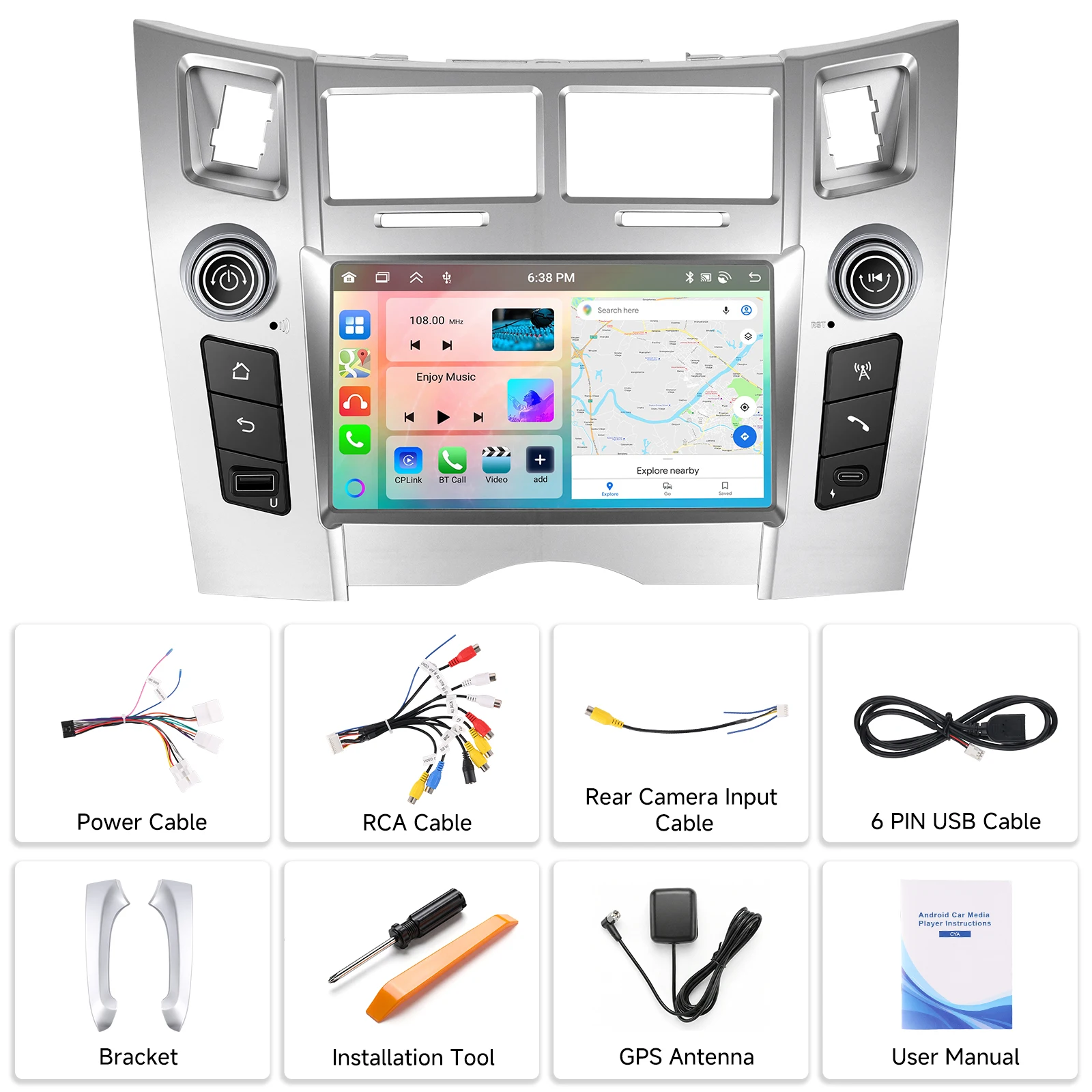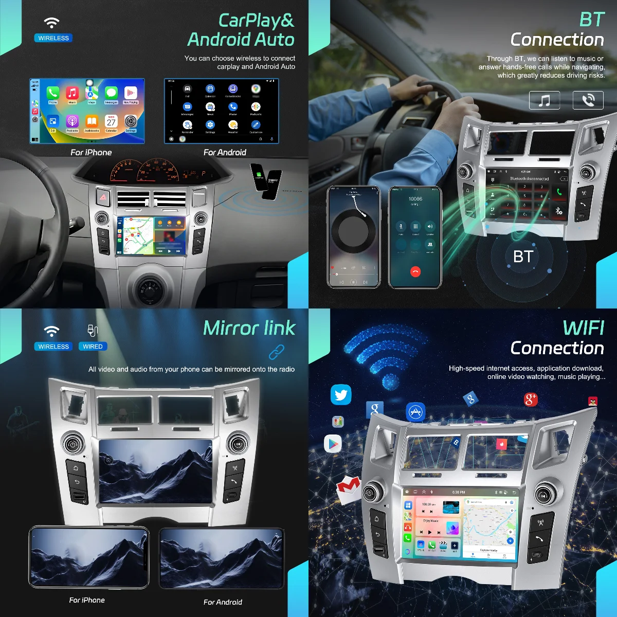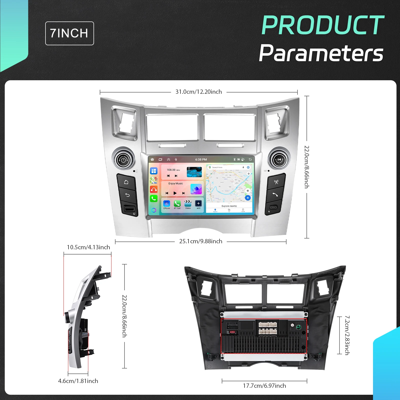 Podofo 7 cala, odtwarzacz samochodowy z systemem Android, stereo, 4+64 GB lub 6+128 GB, bezprzewodowy CarPlay i Android Auto, Bluetooth/WIFI/GPS dla Toyoty Yaris z lat 2005–2011, sprzedaż hurtowa, modele A4624/A4623