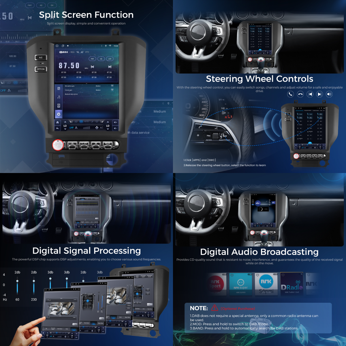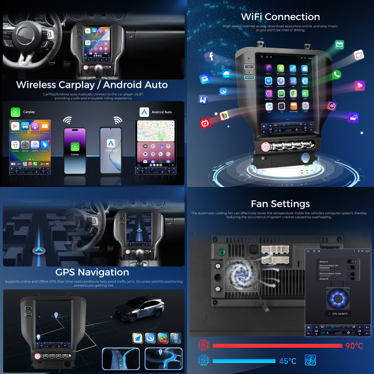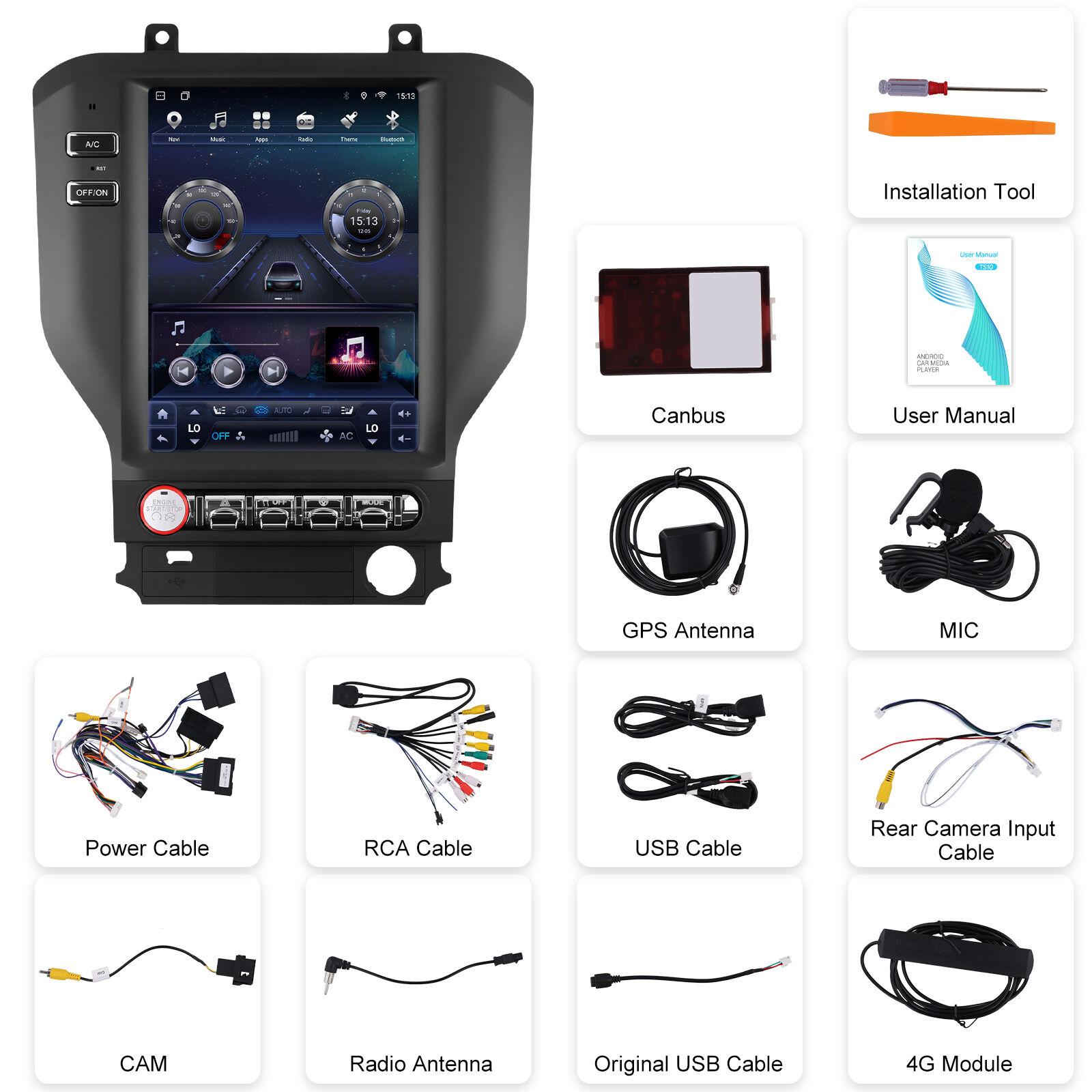 Podofo 10.4-inch 8 Core 4+64G for Ford Mustang 2015-2021 Car Stereo Wireless CarPlay/Android Auto GPS USB Fan Cooling 4G OEM/ODM A4586EU/A4586US
