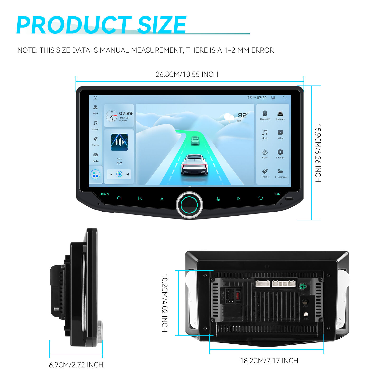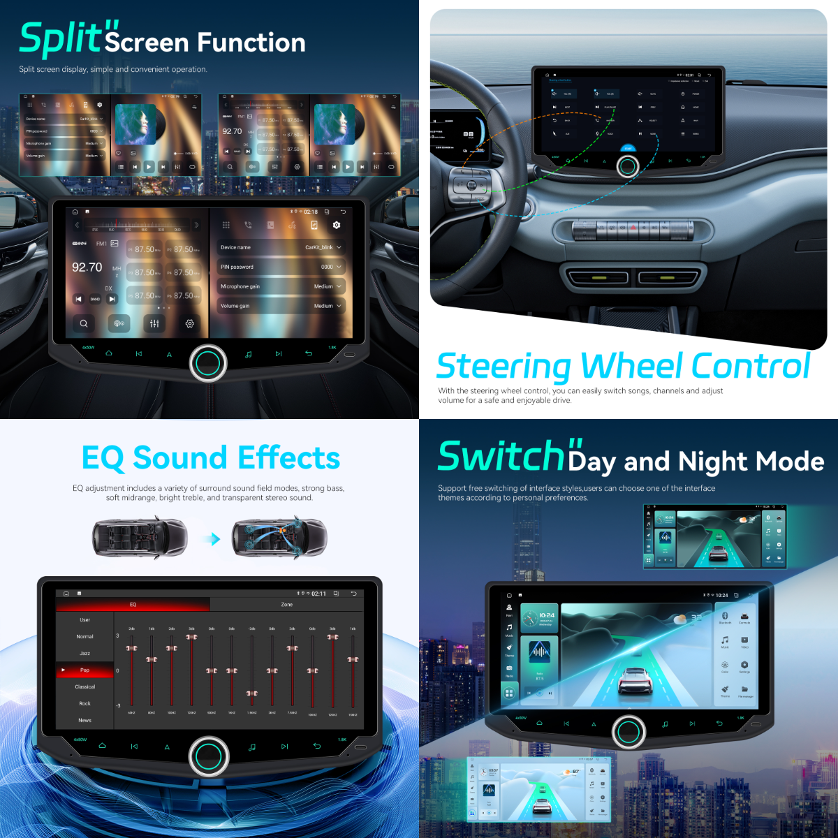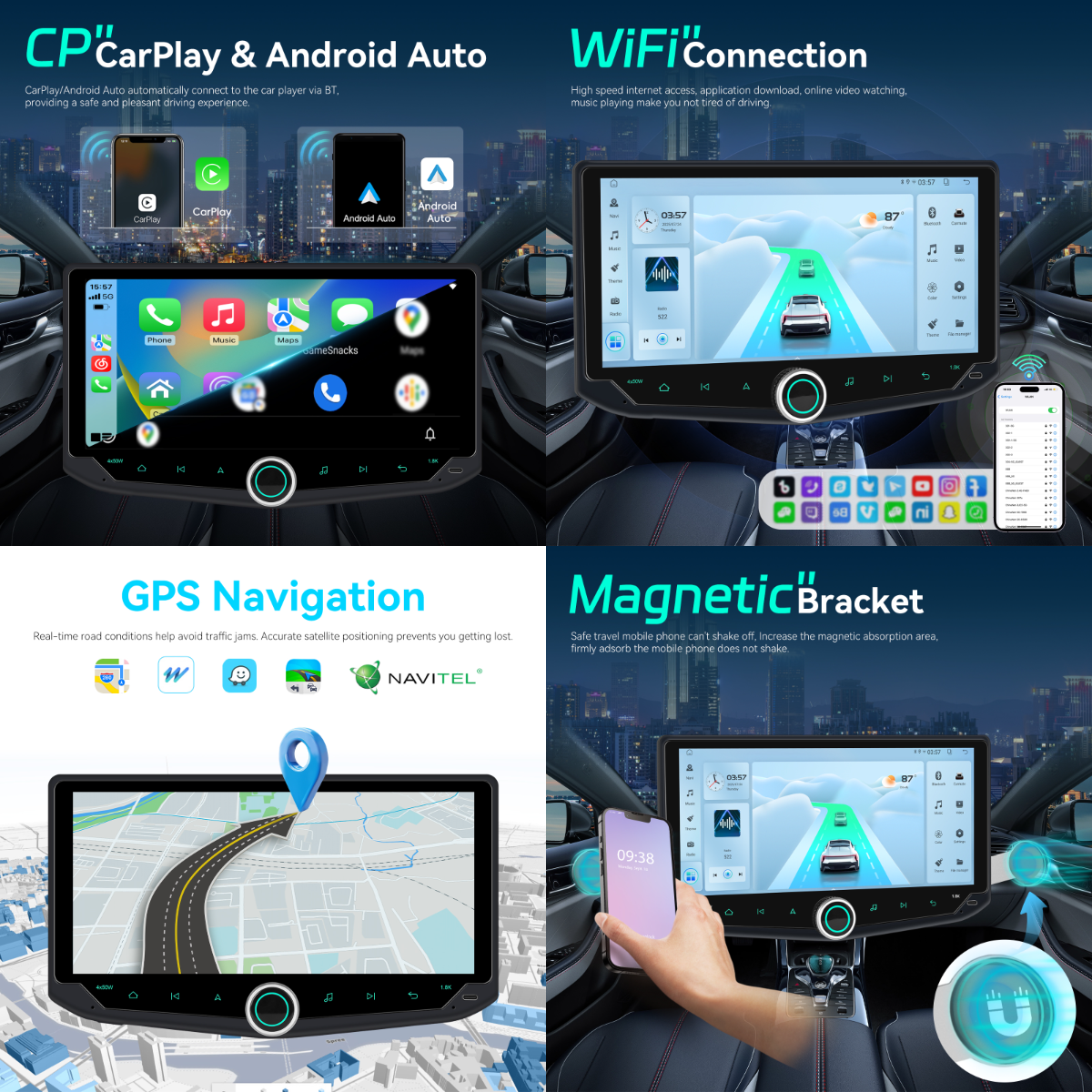 Podofo 10.88" 4+64G 2 Din Android Car Stereo Single Knob Piano Keys Wireless Carplay/Android Auto GPS Wifi Magnetic Bracket OEM A4366