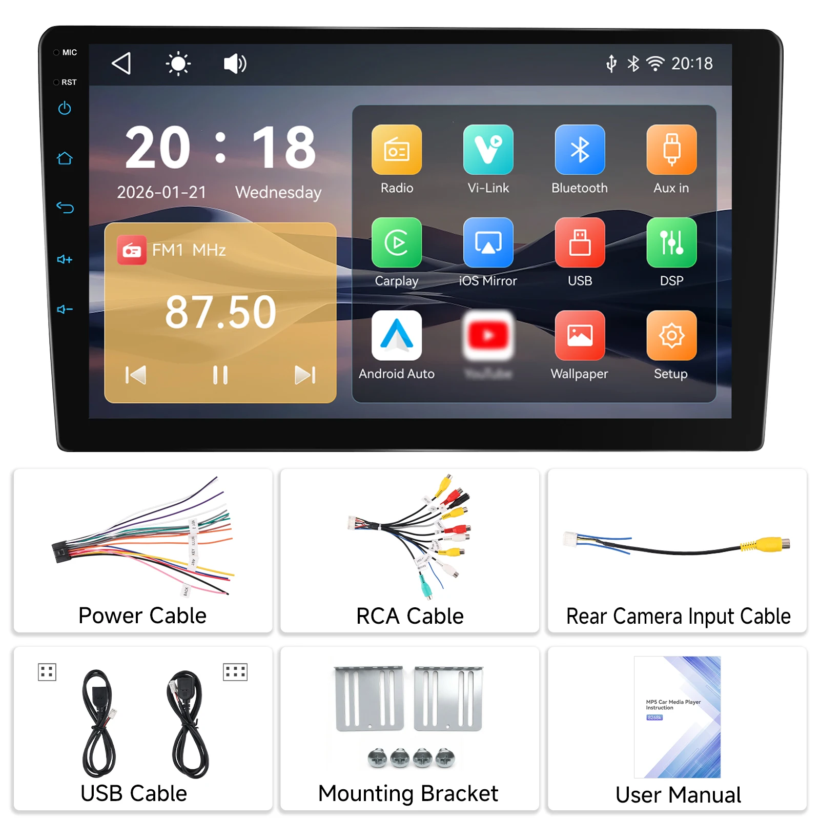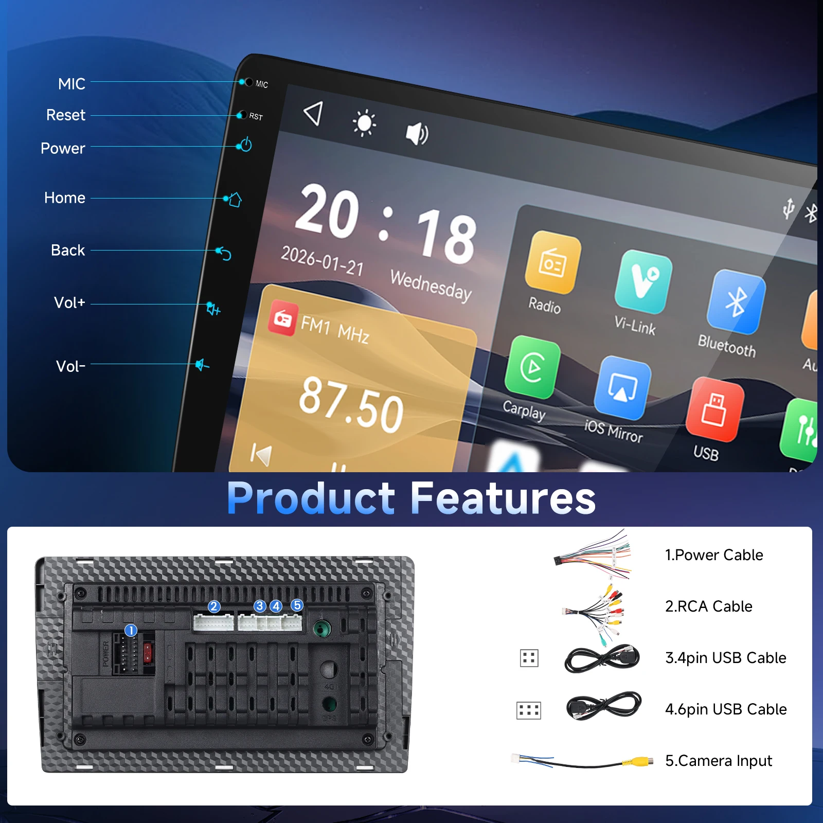 - Rear Camera Input (Optional): Auto-switch to reverse view