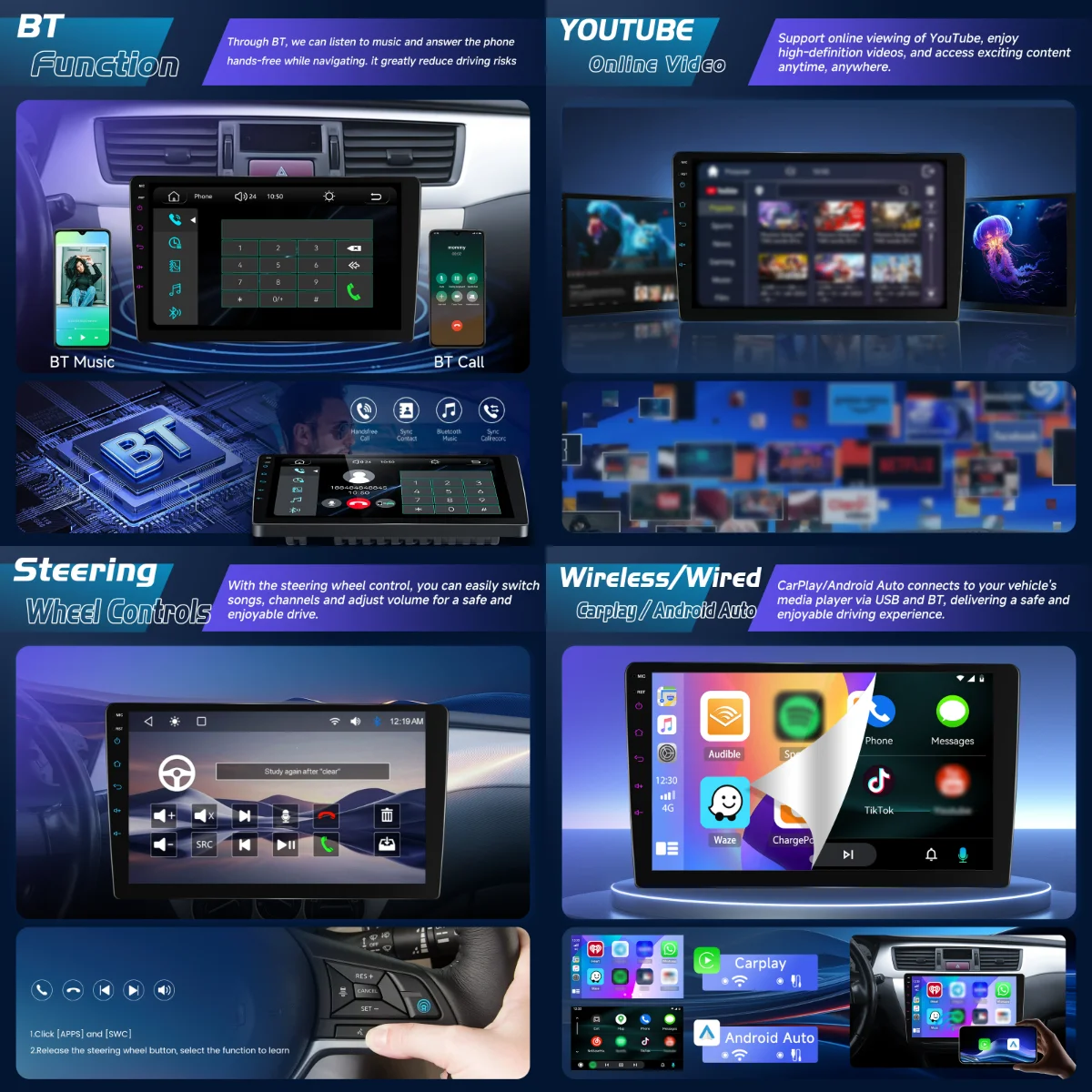 - Mirror Link: iOS wireless, Android wireless & wired screen mirroring