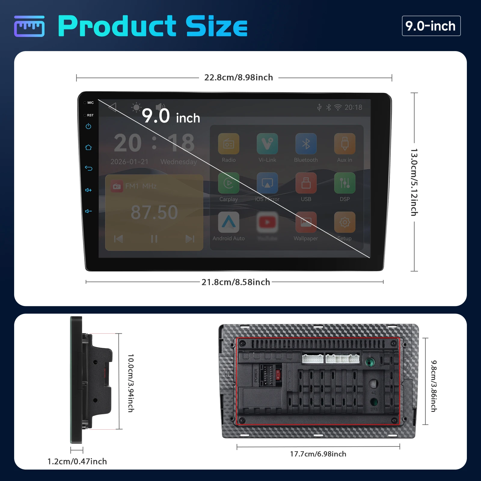 | Carplay/Android auto | Support | Radio Band | FM / RDS |