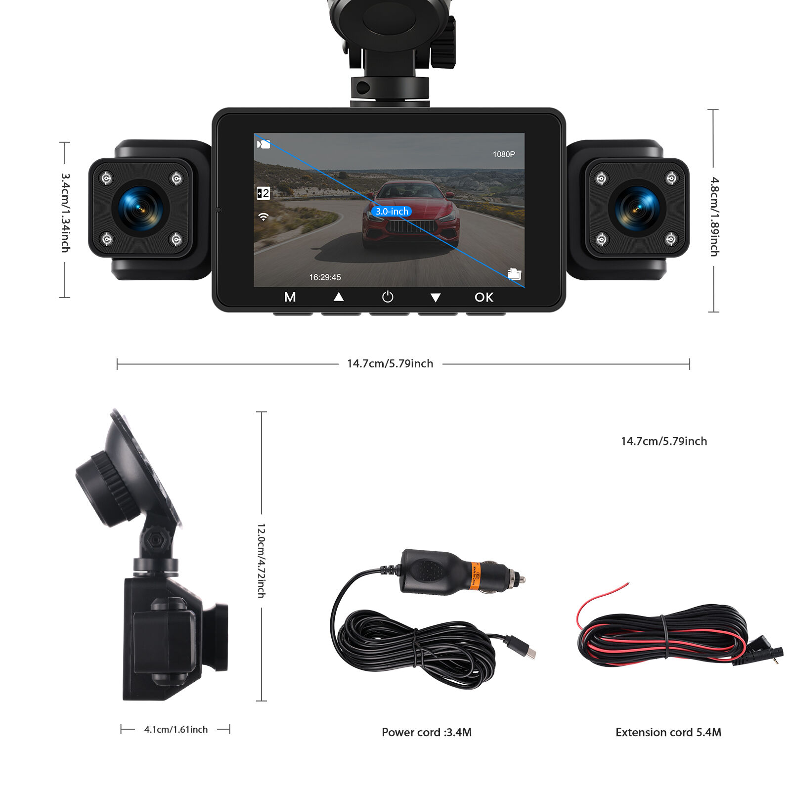 Podofo 3-inch 4 Lens Car DVR Dash Cam HD 1080P Car Camera IPS Car Video Recorder G-Sensor Night Vision WiFi 4-Channel Recording L5955