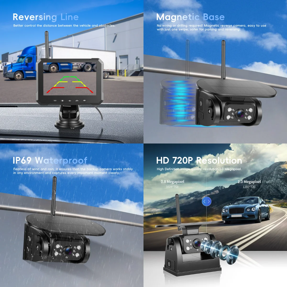 - IP69 Waterproof Magnetic Mount: Powerful magnetic base, easy attachment/removal, withstands outdoor conditions