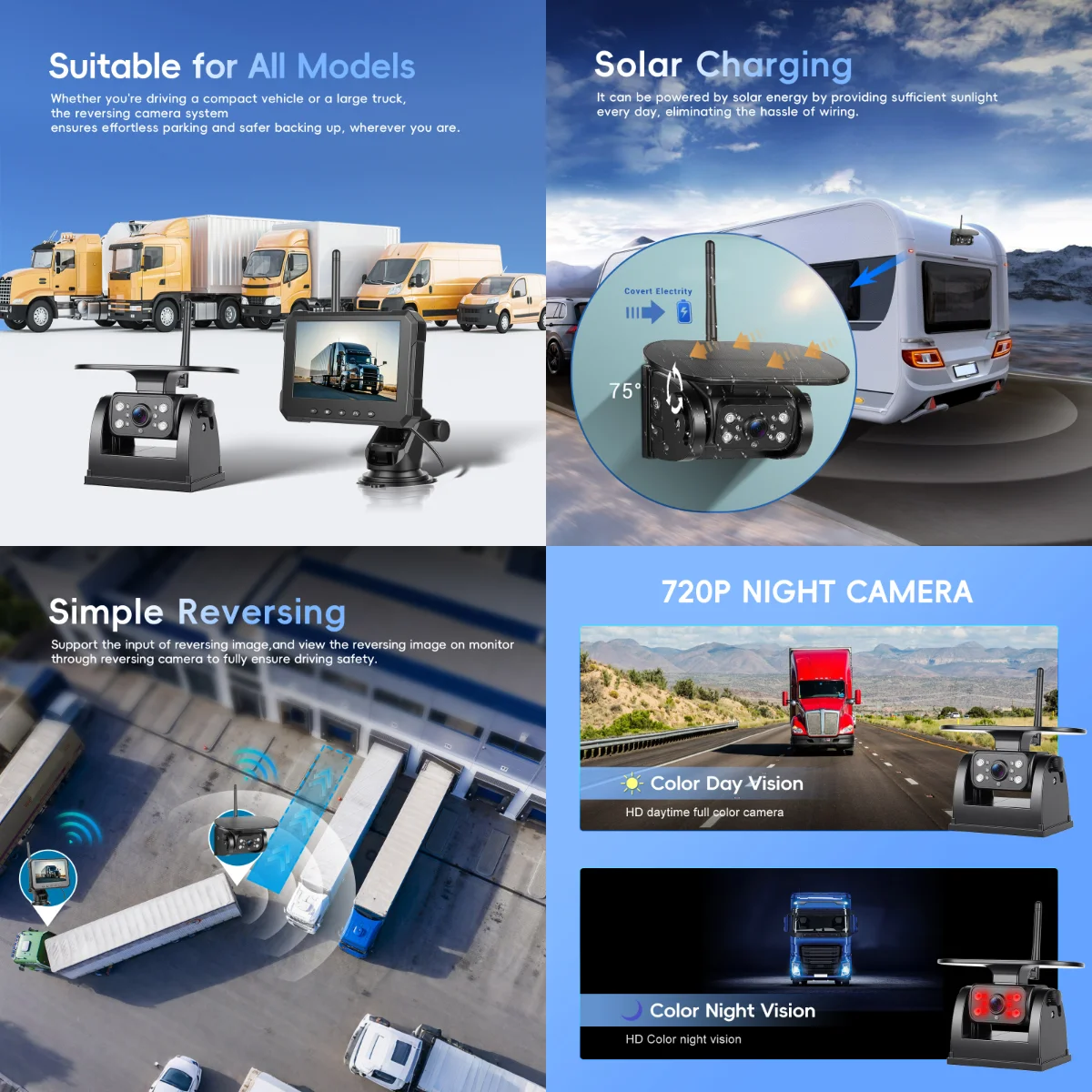 - Easier Parking: Clear rear view for safe parking in complex terrains or low-light conditions