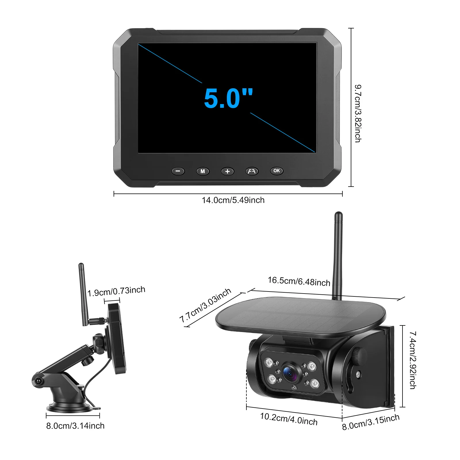 - 5-inch Wireless HD IPS Display: High-performance chip, strong anti-interference, clear rear-view image