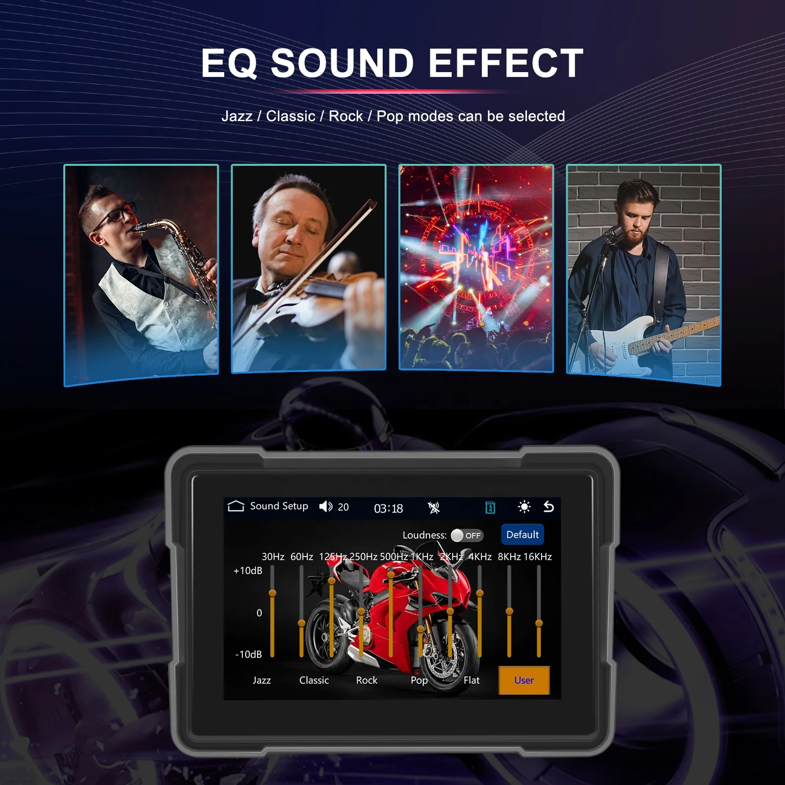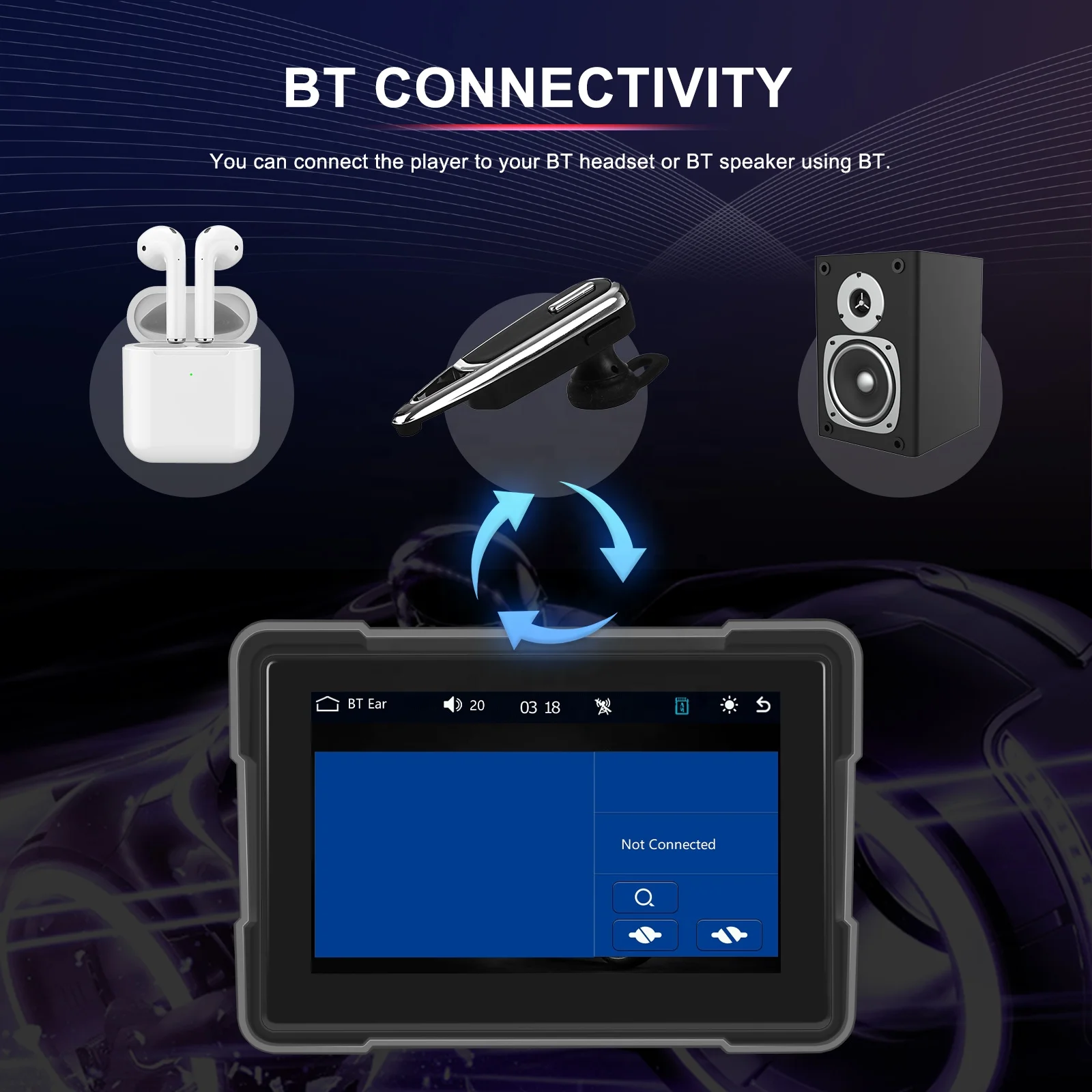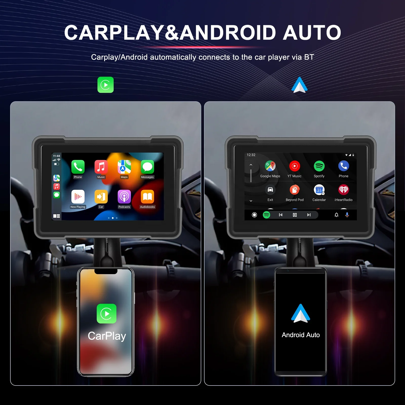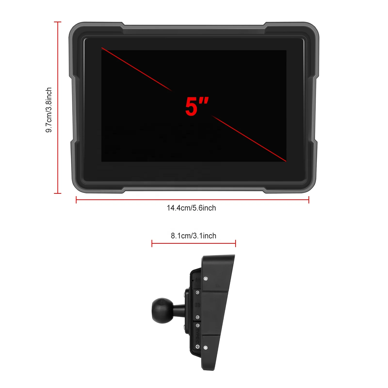Podofo 5" Touch Screen Motorcycle Wireless Carplay Android Auto Navigation GPS Navigator IP67 Waterproof for Motorcycle BT EQ A3580