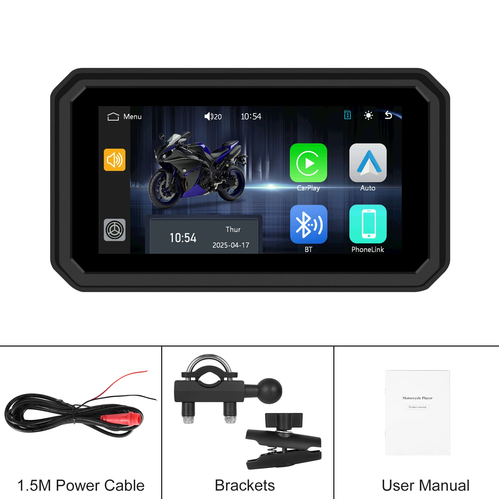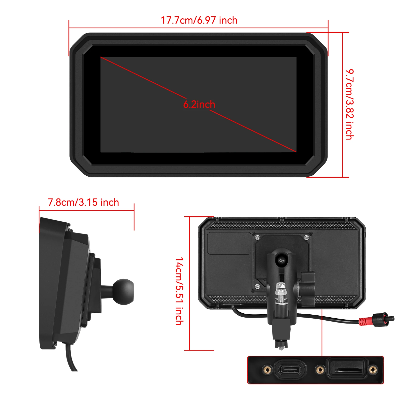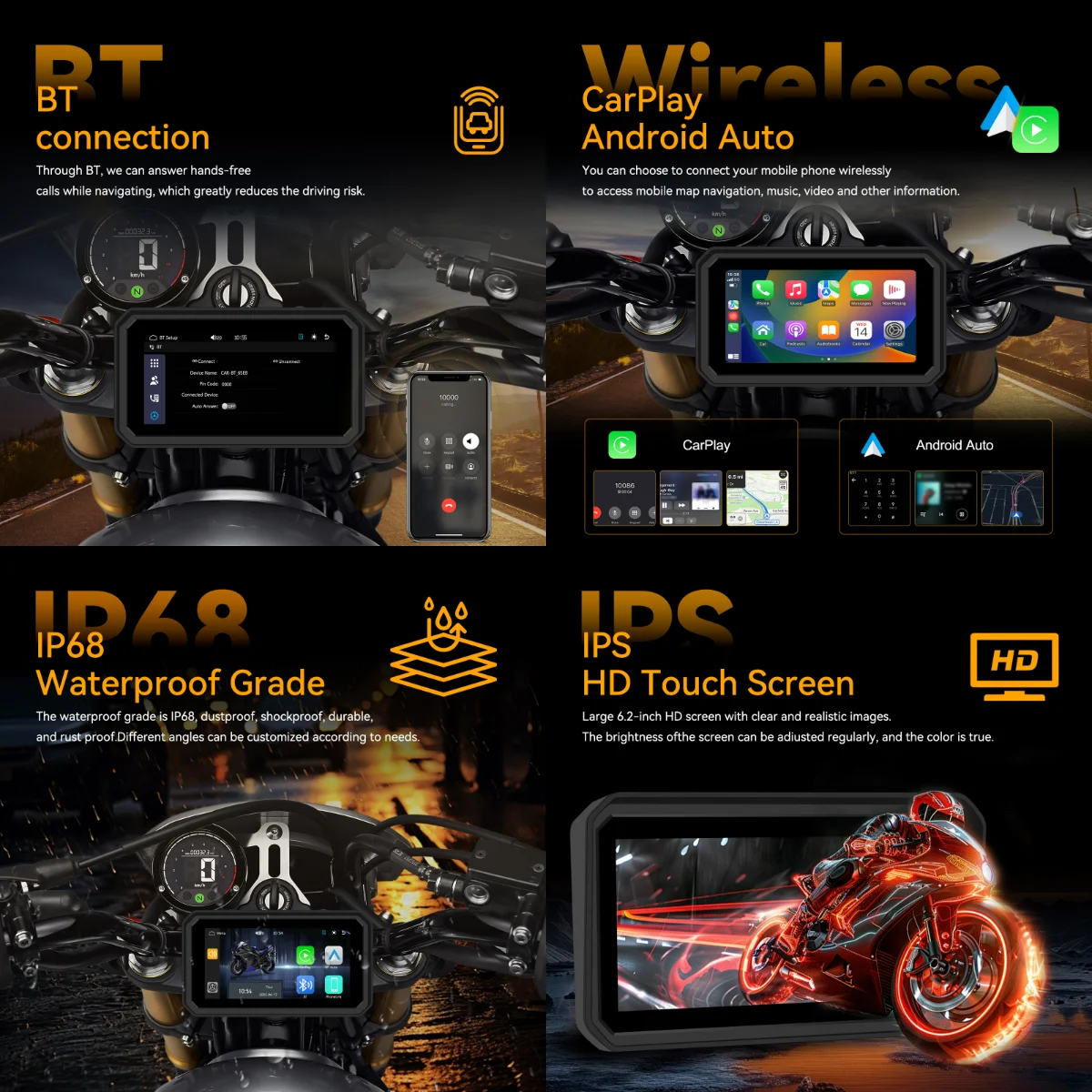 Podofo 6.2 Inch Portable Motorcycle Carplay/Android Auto IPS Screen BT IP68 Waterproof Motorcycle Radio OEM/ODM/Customization A4162