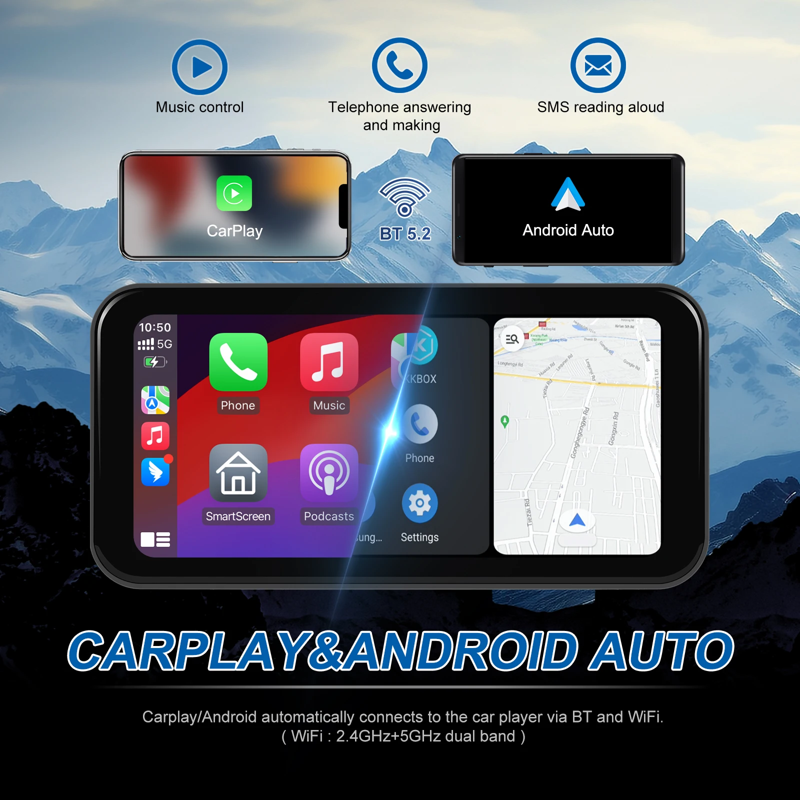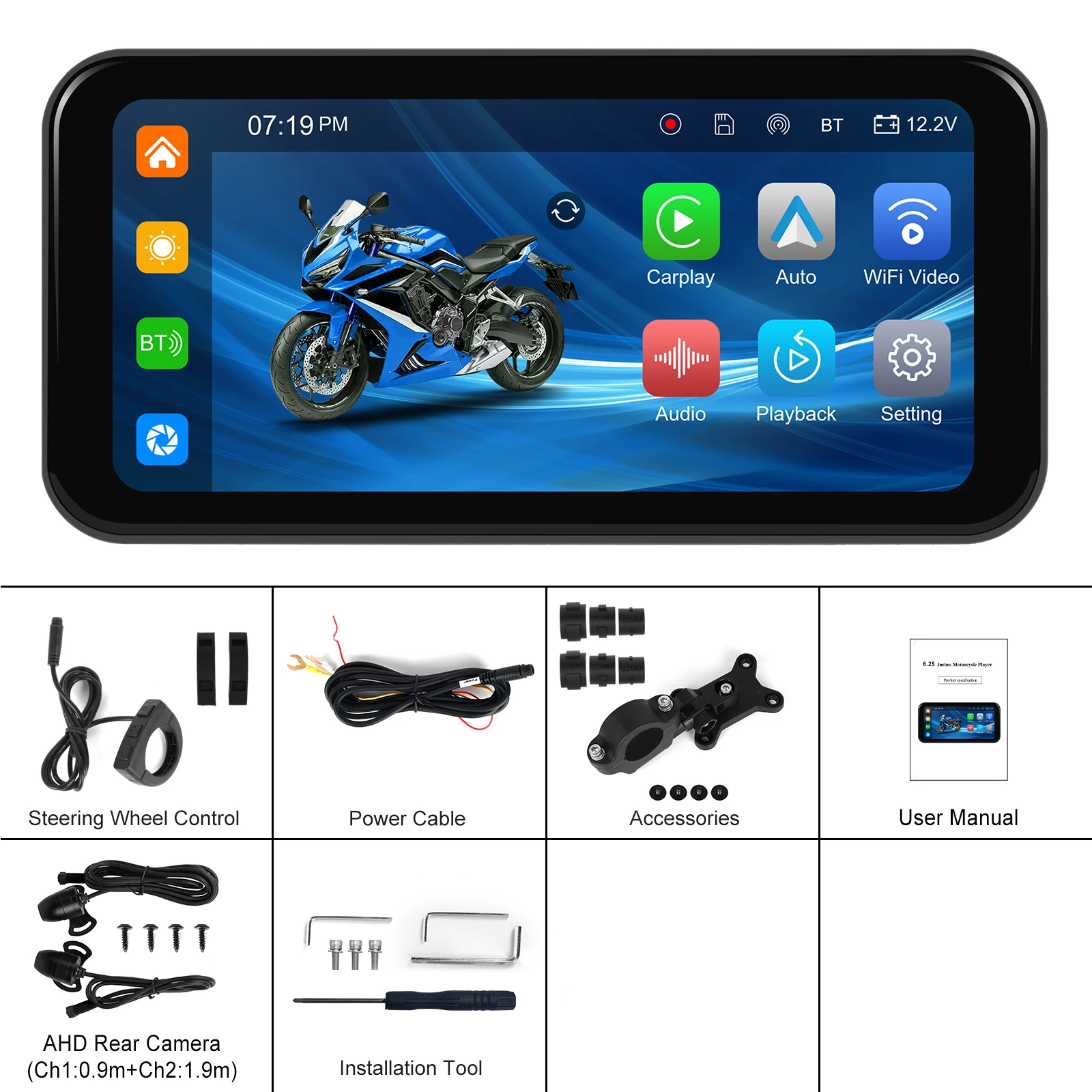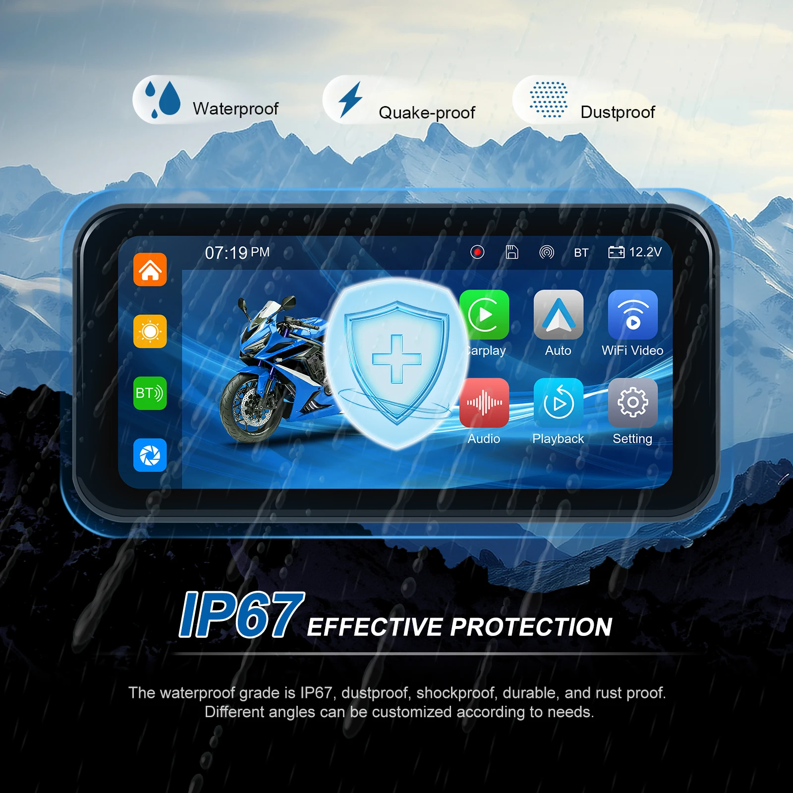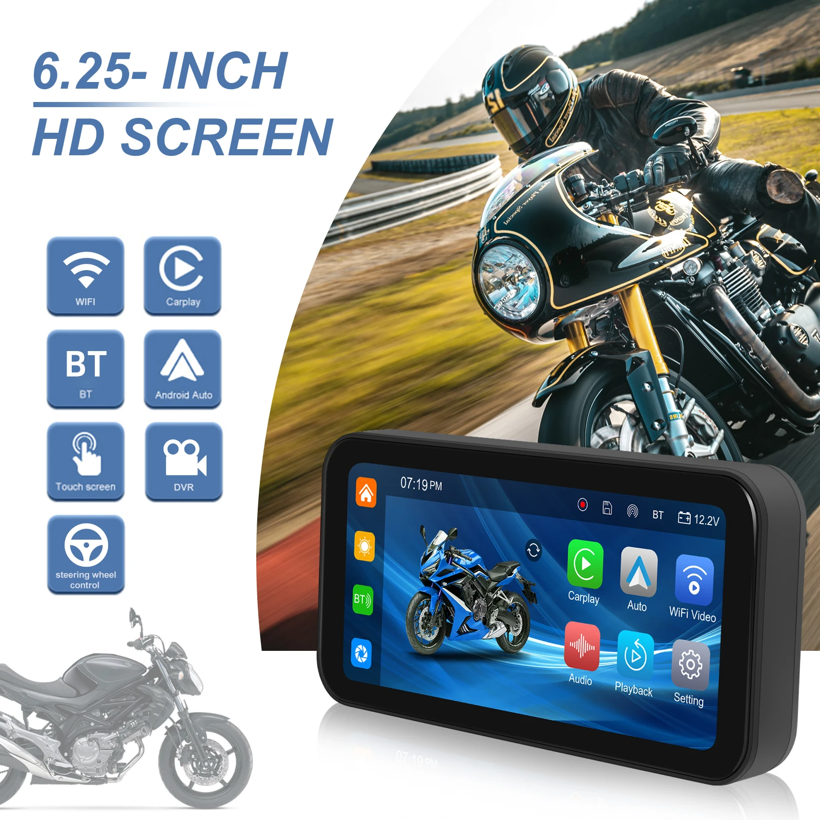 Podofo 6.25 Inch Portable Wireless Carplay Android Auto IP67 Waterproof for Motorcycle DVR BT Front Back Camera Auto Electronics A3660