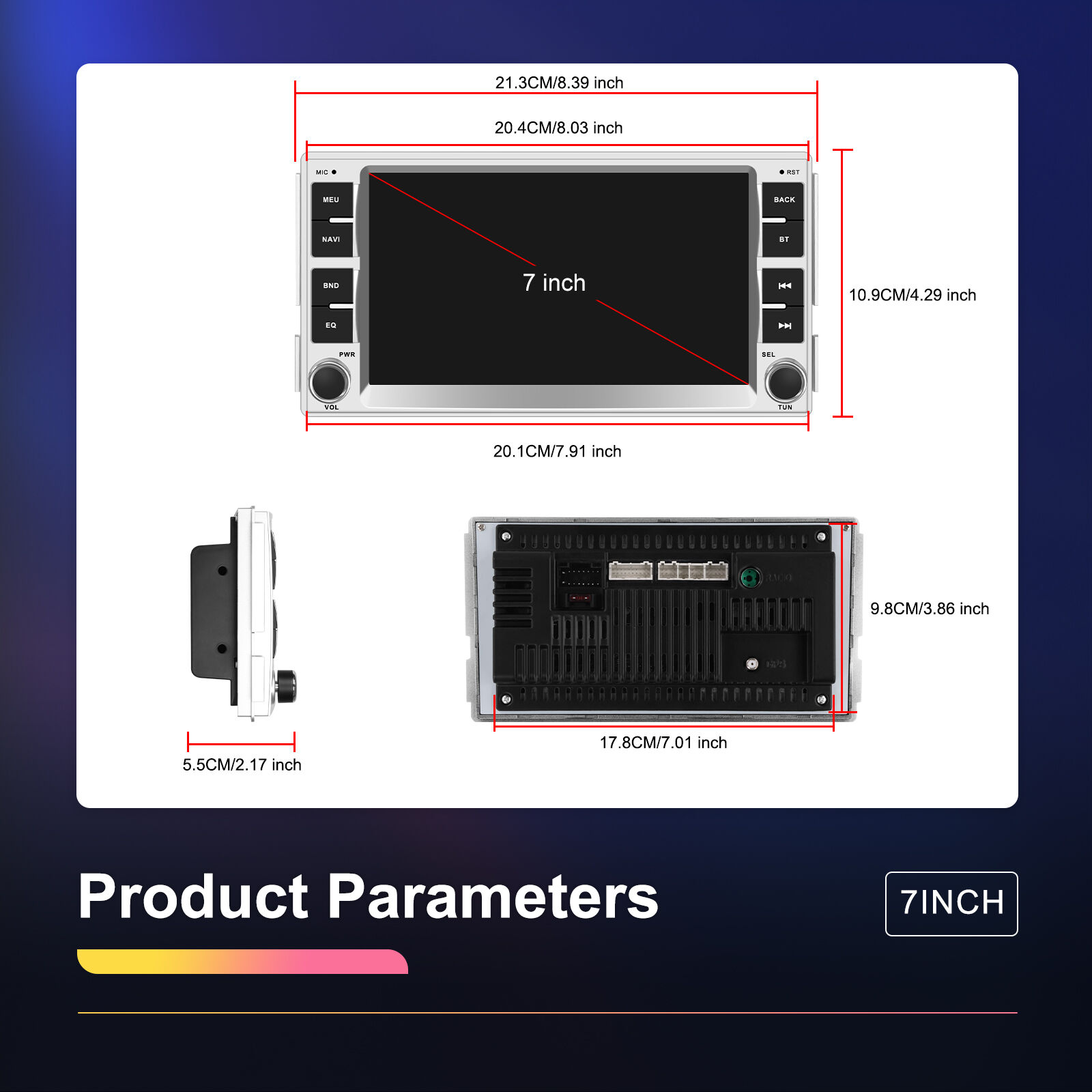 - 7-inch HD Touchscreen: 1024x600 resolution, responsive control
