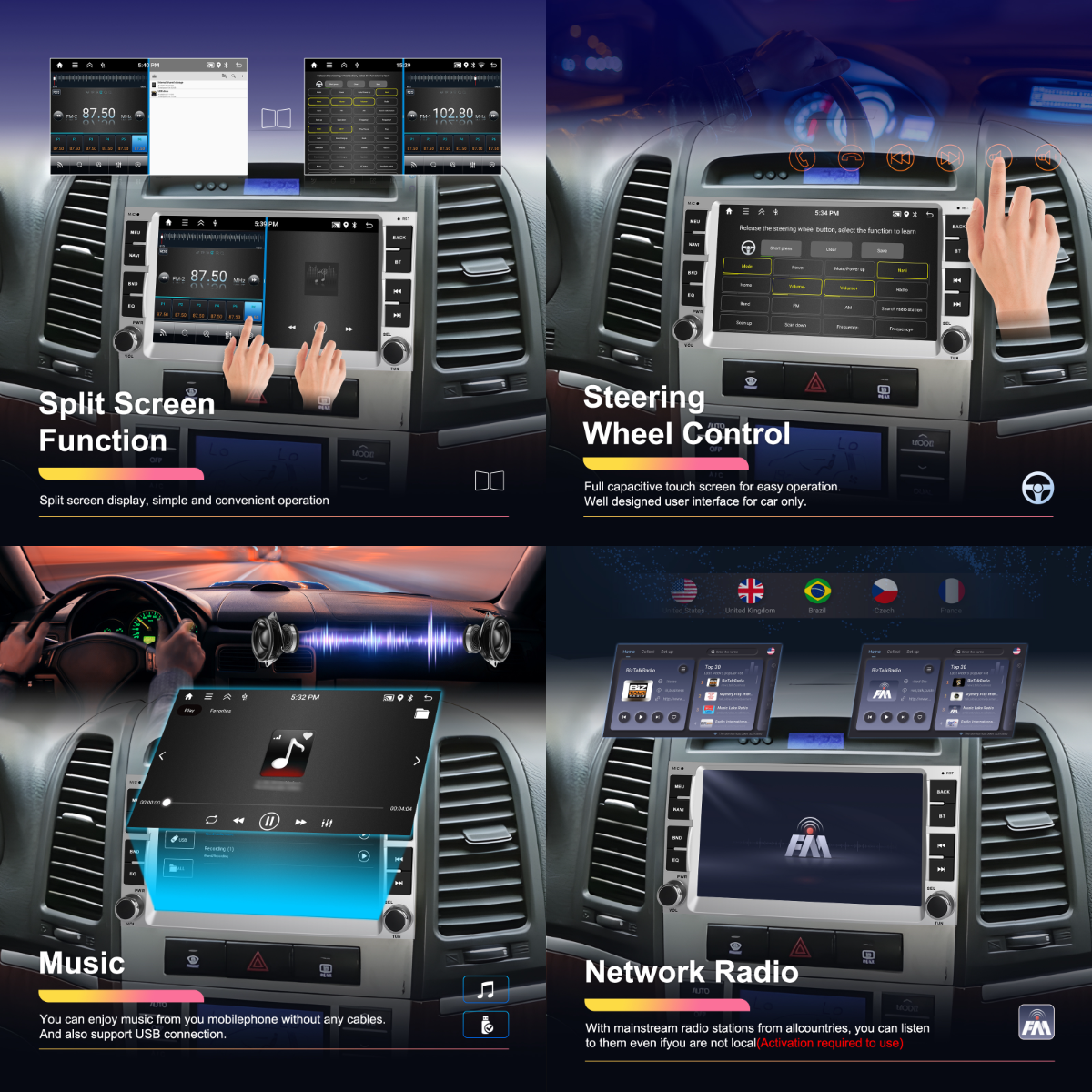 - FM/RDS Radio: Clear reception for music, news, traffic updates