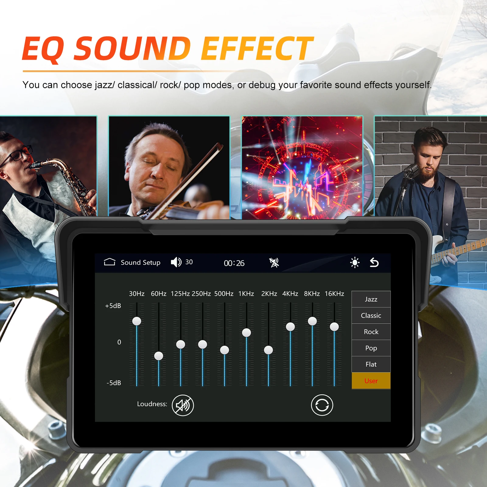 Podofo 7 Inch Motorcycle Portable Carplay Screen Wireless Carplay /Android Auto Monitor IP67 Waterproof Airplay Android Cast BT A3954