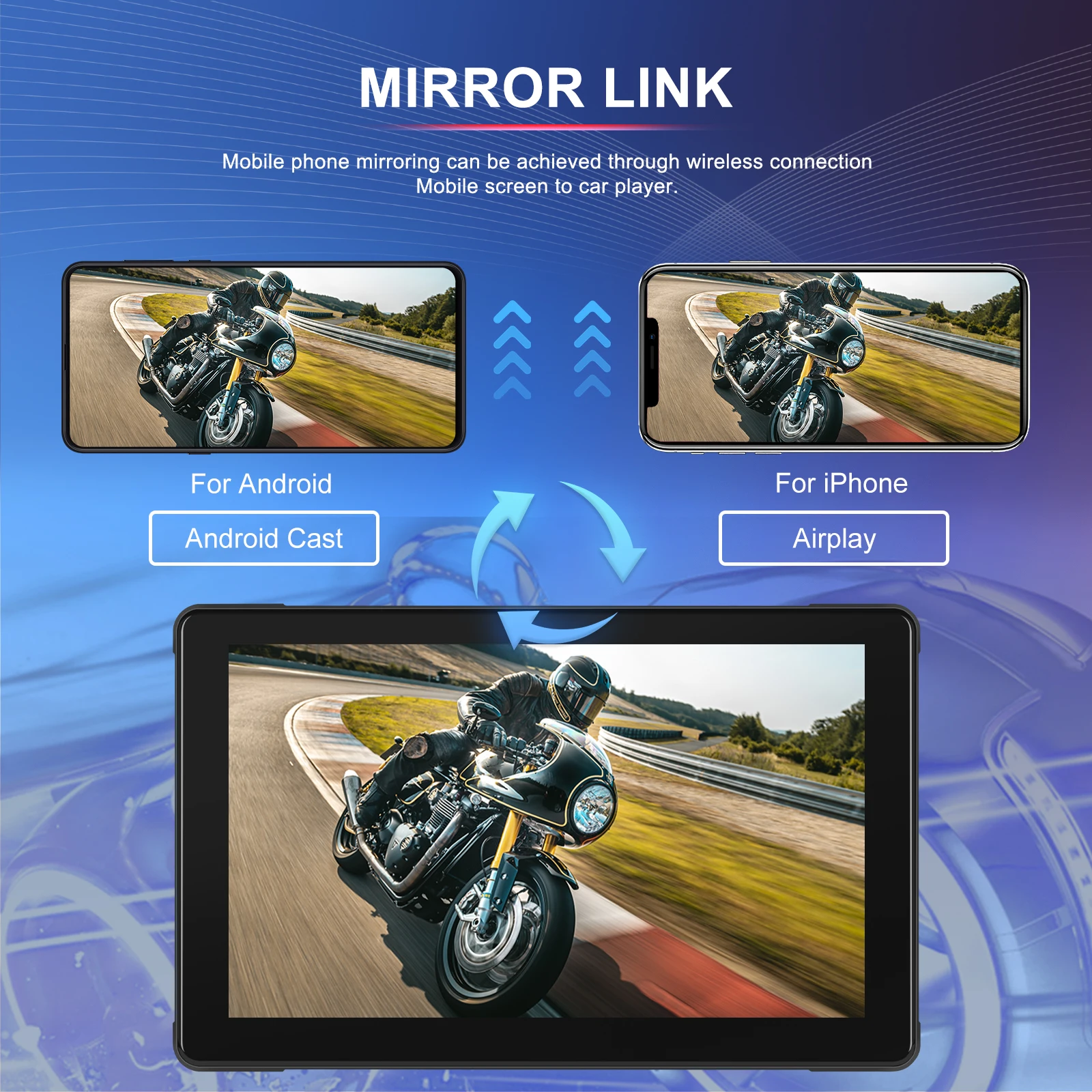 Podofo 7 Inch Portable Wireless Carplay /Android Auto Monitor IP67 Waterproof for Motorcycle Support Airplay Android Cast BT A3614