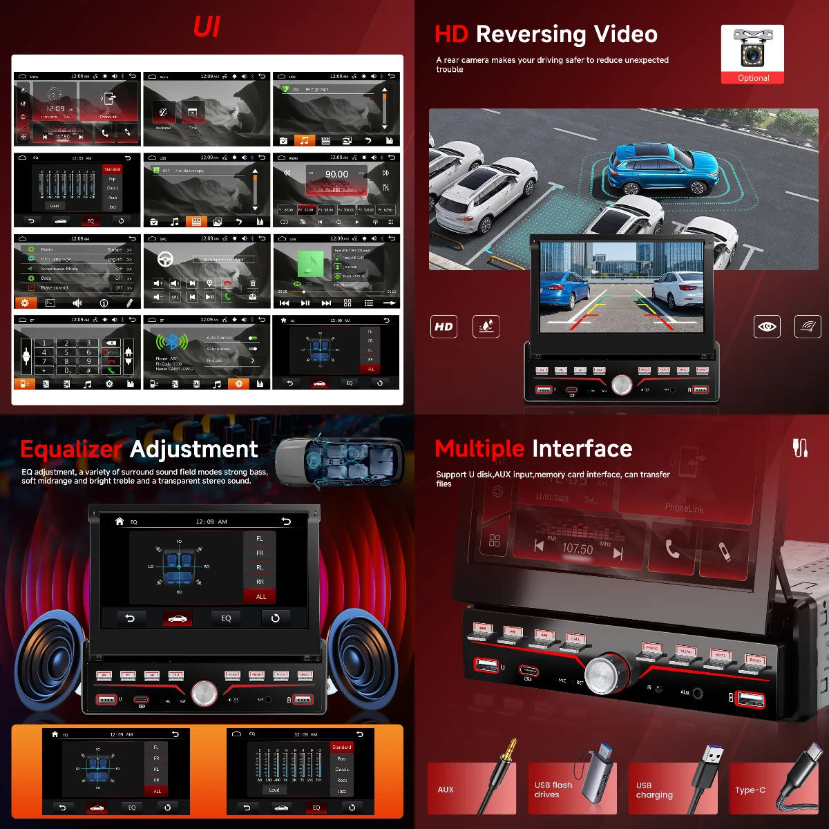 - Multi-Function USB & Type-C: Fast charging, media playback, data transfer