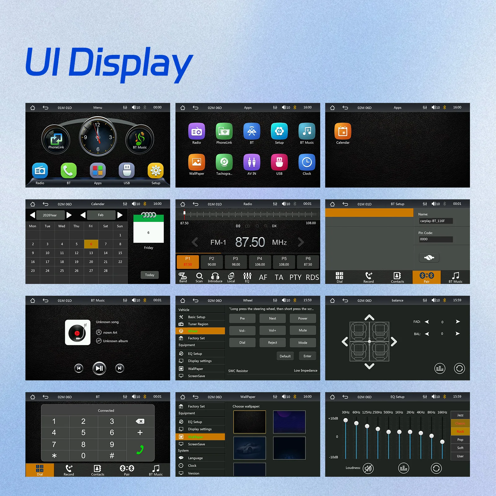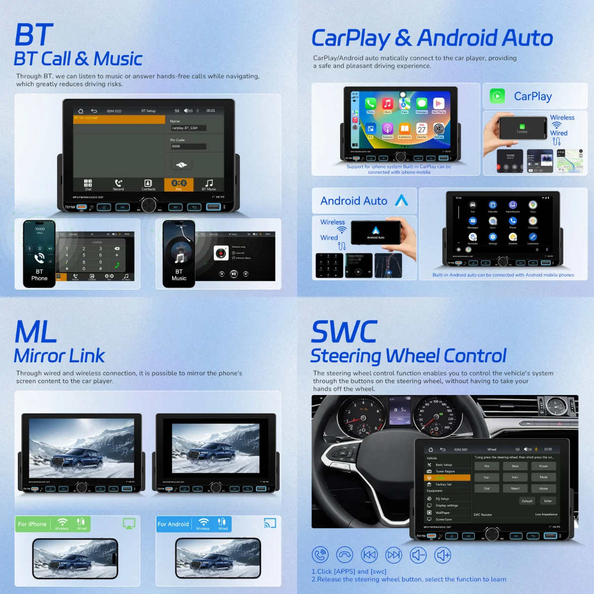 - FM/AM/RDS Radio: High-sensitivity receiver, real-time station info, music, news, traffic