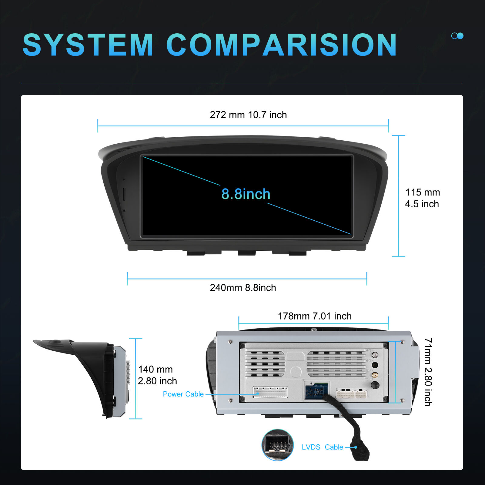 Podofo 8.8'' 8 Core 4+128G Car Stereo Car Radio for BMW 3/5 Series E60 2005-2008 Carplay Android Auto WIFI&4G GPS Bulk Supplier A4304EU/A4304US