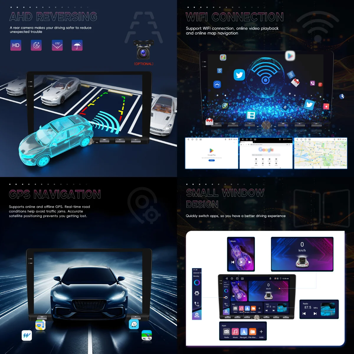- Built-in GPS: Online/offline maps, voice guidance, real-time traffic