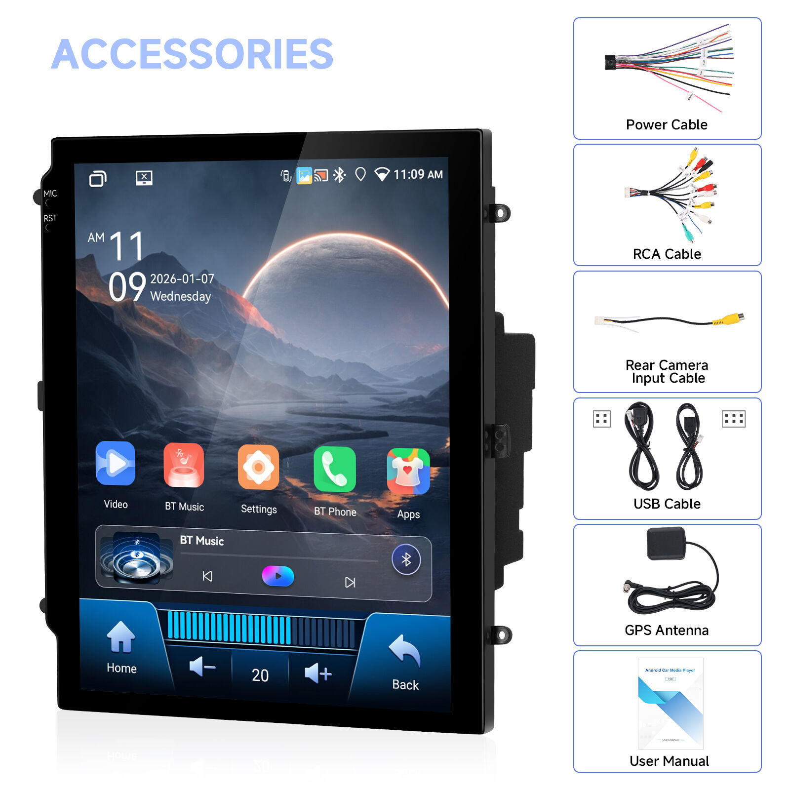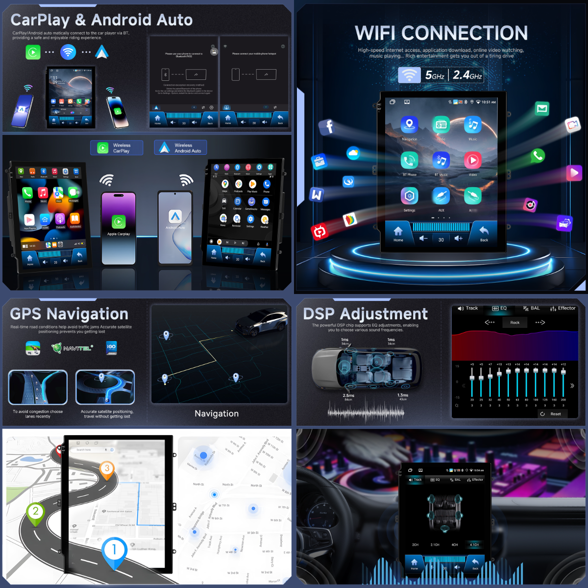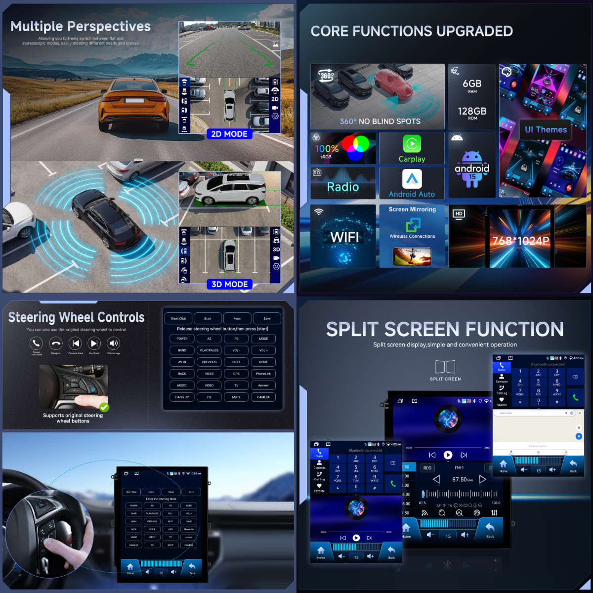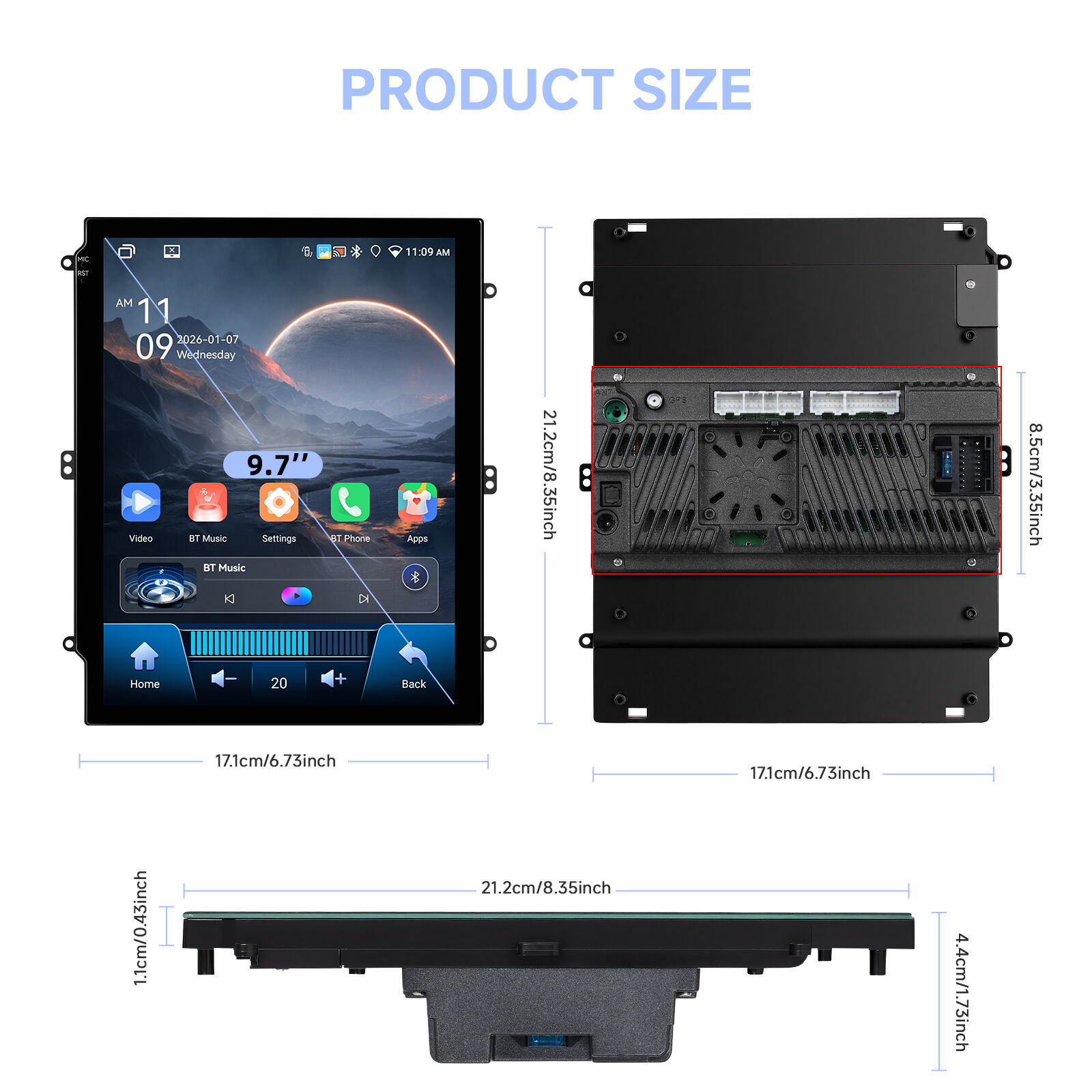 Podofo 9.7-inch 6+128G 8 Core Car Stereo Support 360° Panoramic View Wireless CarPlay Android Auto Vertical Screen GPS/WiFi/DSP A4569