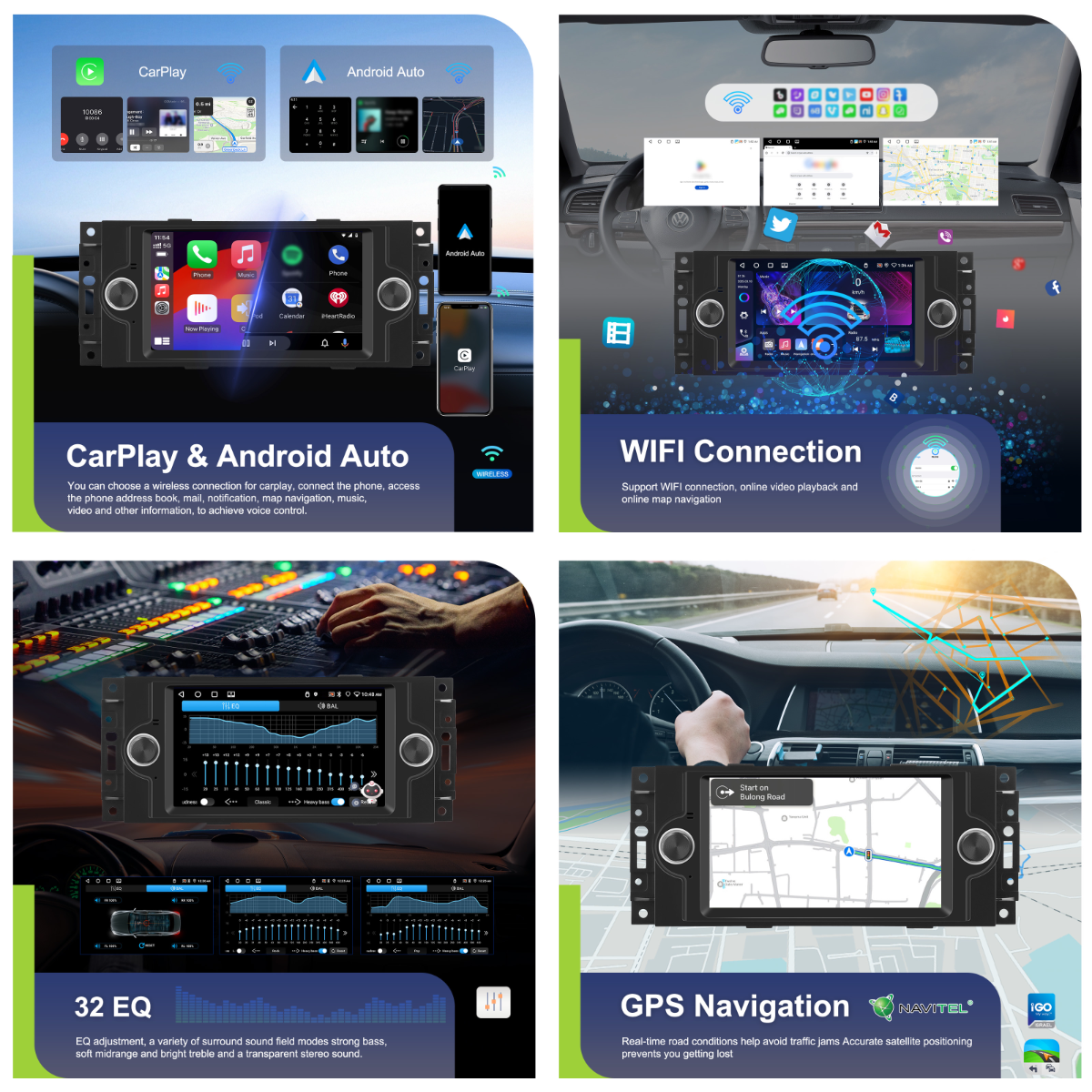- Wireless CarPlay & Android Auto: Hands-free calls, navigation, messages, music