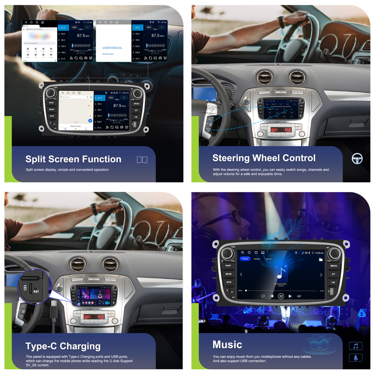 - FM/RDS Radio, Split-Screen Multitasking