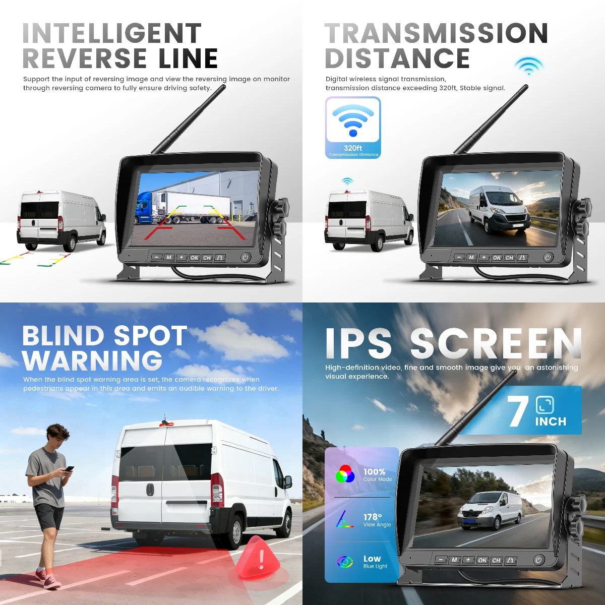 - 7-inch Wireless HD Button Screen: Clear visuals, physical key operation, sunlight-readable
