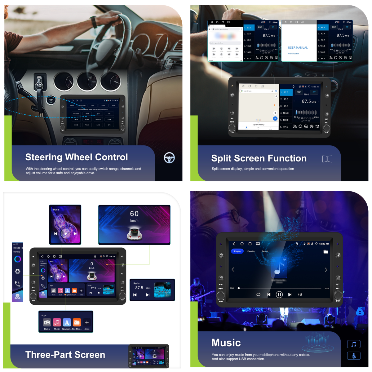 - Wireless Mirror Link: Mirror phone screen for apps, music, videos