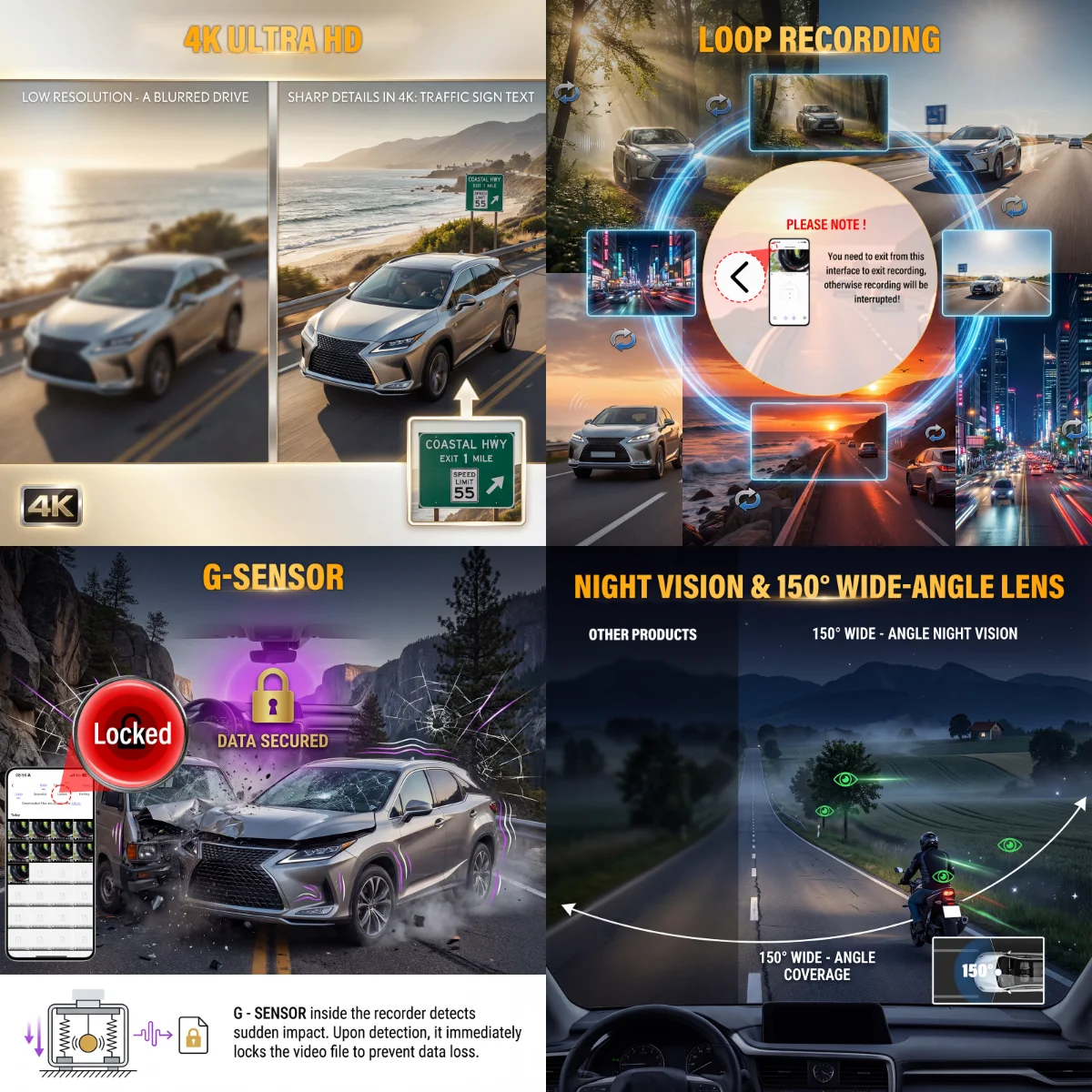 - Loop Recording: Auto-overwrites oldest footage when card is full