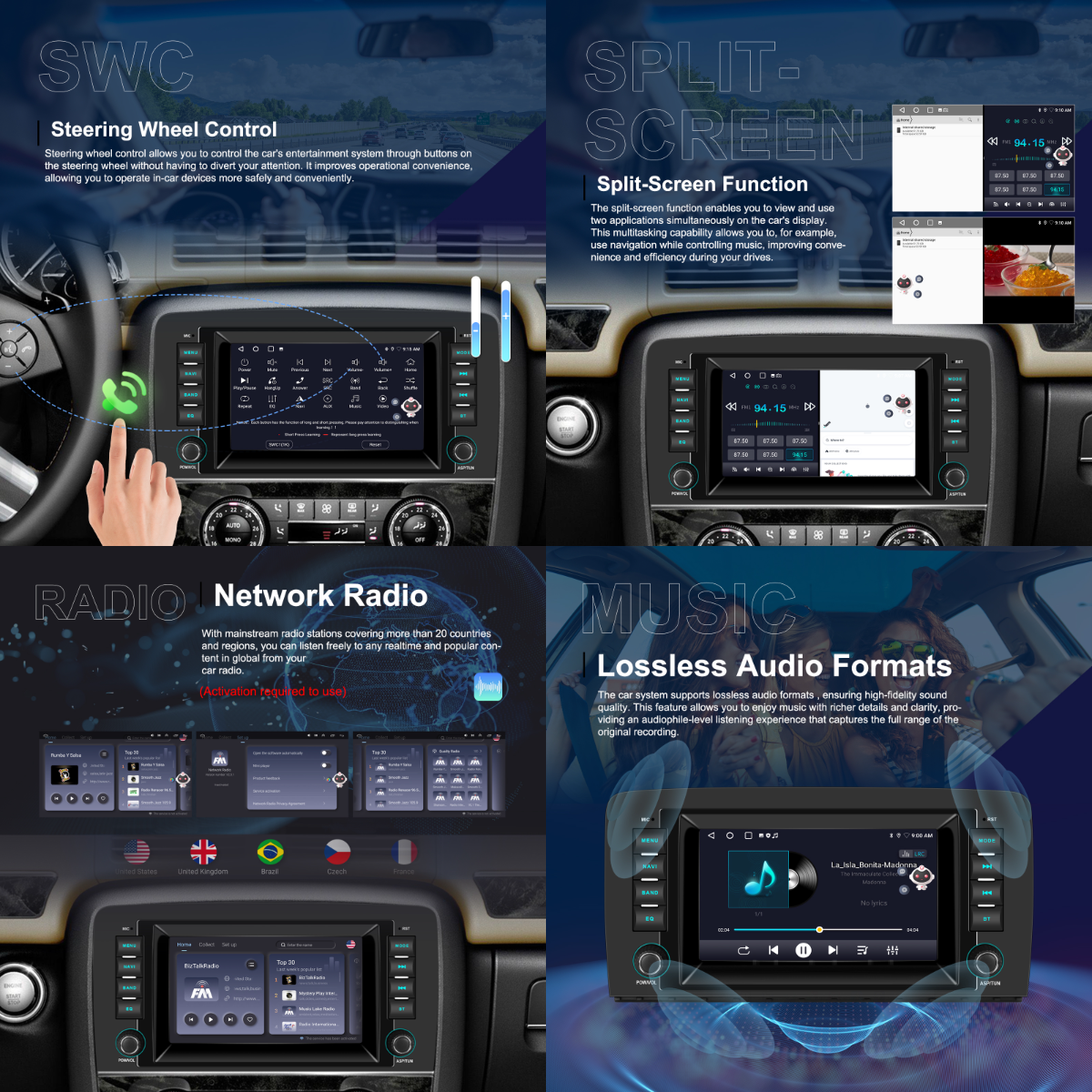 - FM/RDS Radio: Clear reception for music, news, traffic updates