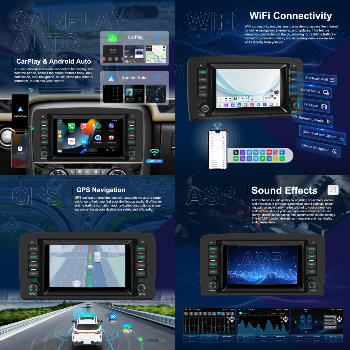 - Wireless CarPlay & Android Auto: Hands-free calls, navigation, music