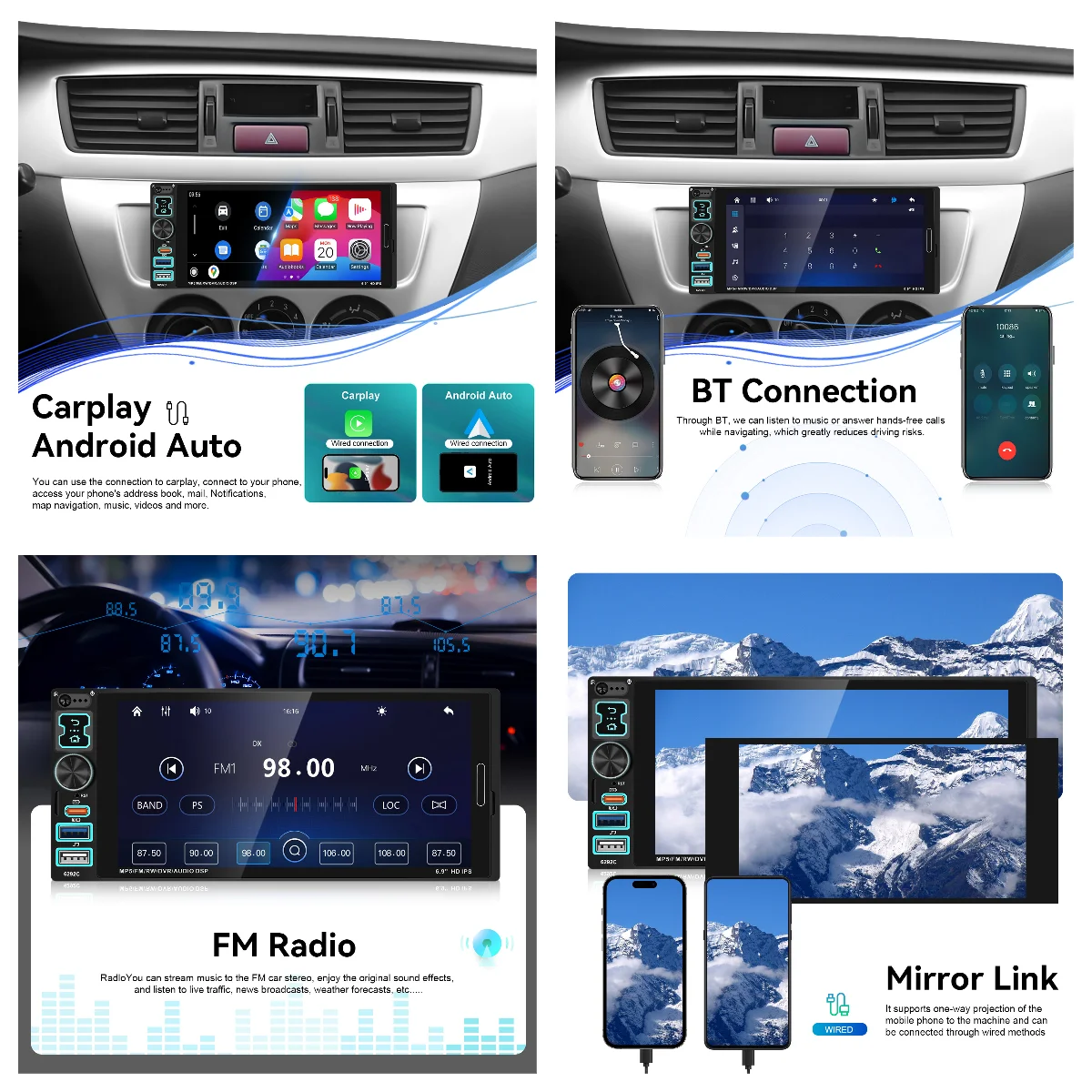 - Mirror Link: Mirror smartphone screen on car display for app and media access