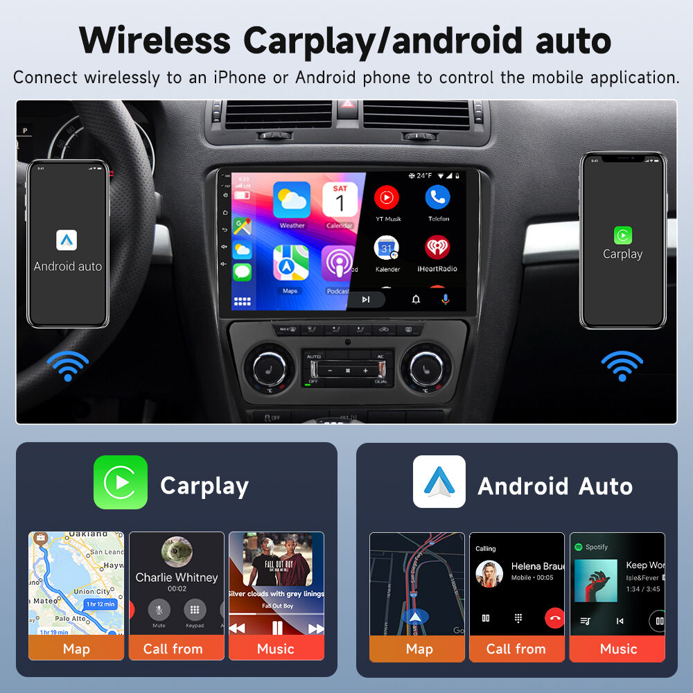 Podofo 10.1" Android Car Stereo Wireless CarPlay & Android Auto GPS WIFI EQ FM RDS Car Radio for Skoda Octavia 2004-2014