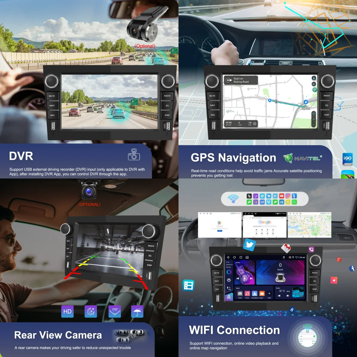 ●FM/RDS radio: Receive radio signals from various stations with clear sound and quality. Listen to music, newsletters and traffic information anytime.