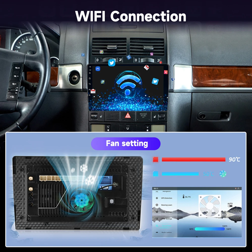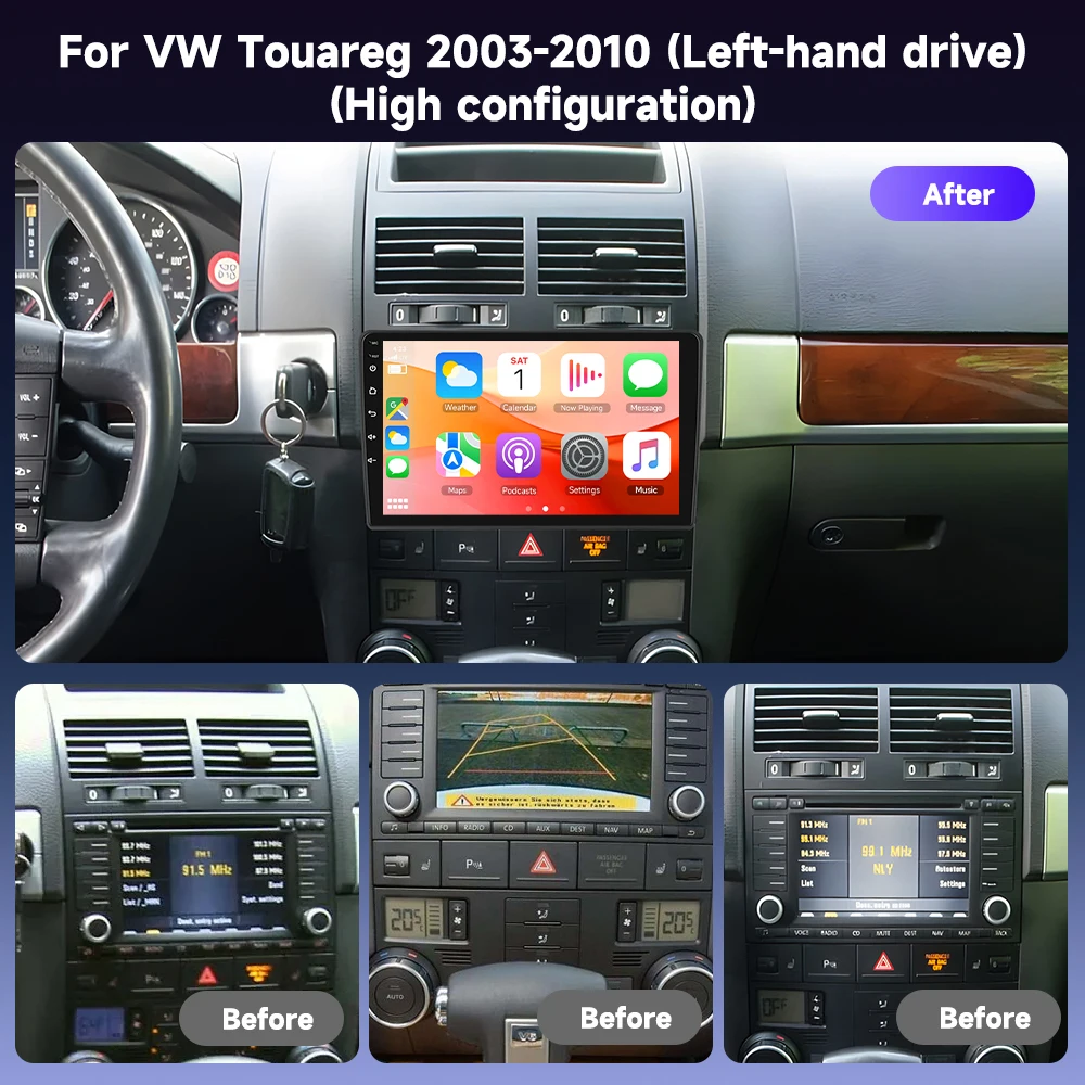Podofo 9'' 4+64G Qualcomm 8 Core Car Radio for Volkswagen Touareg 2003-2010 Wireless CarPlay/Android Auto WiFi 4G Wholesale OEM